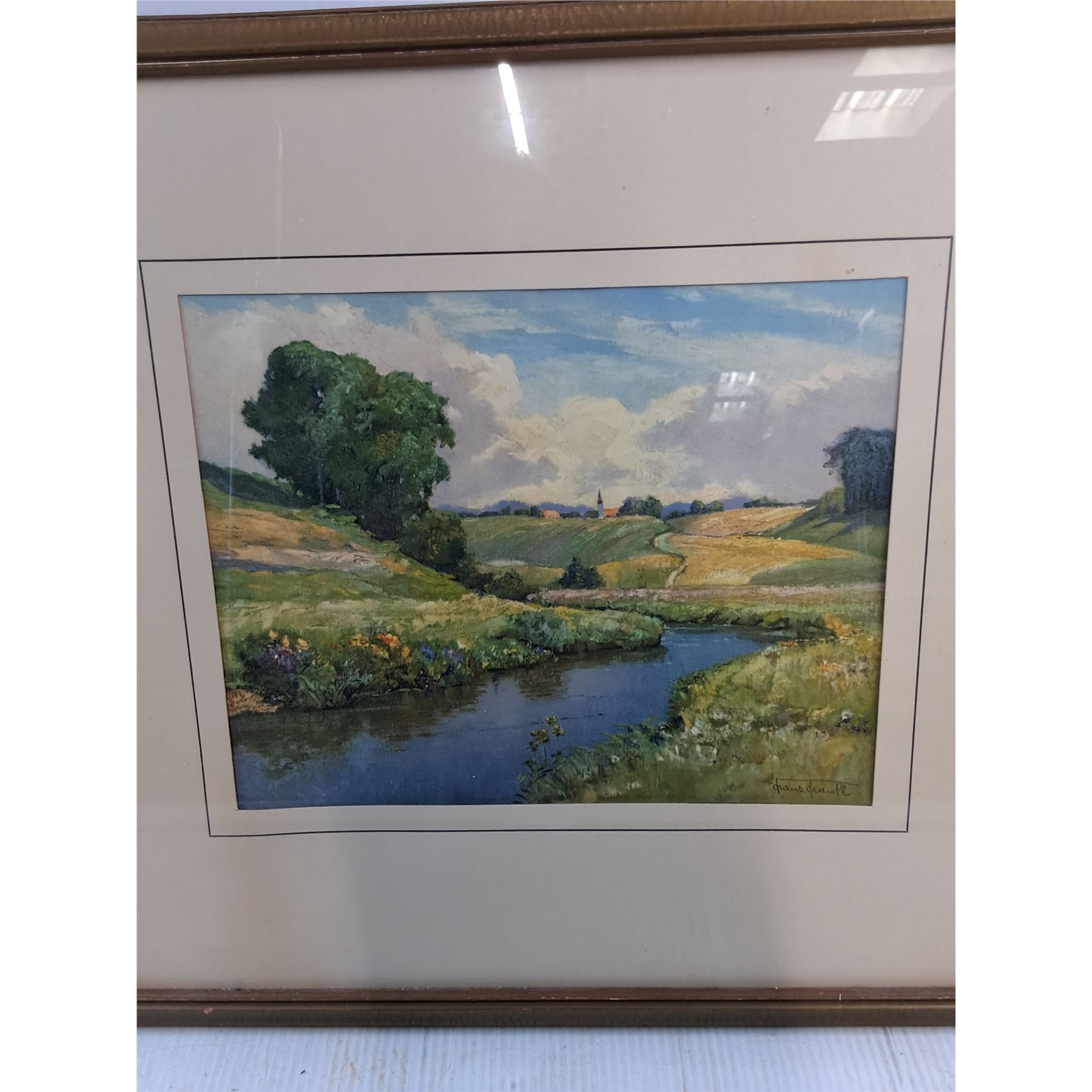 Early Framed Coloured Lithograph-19"x17"