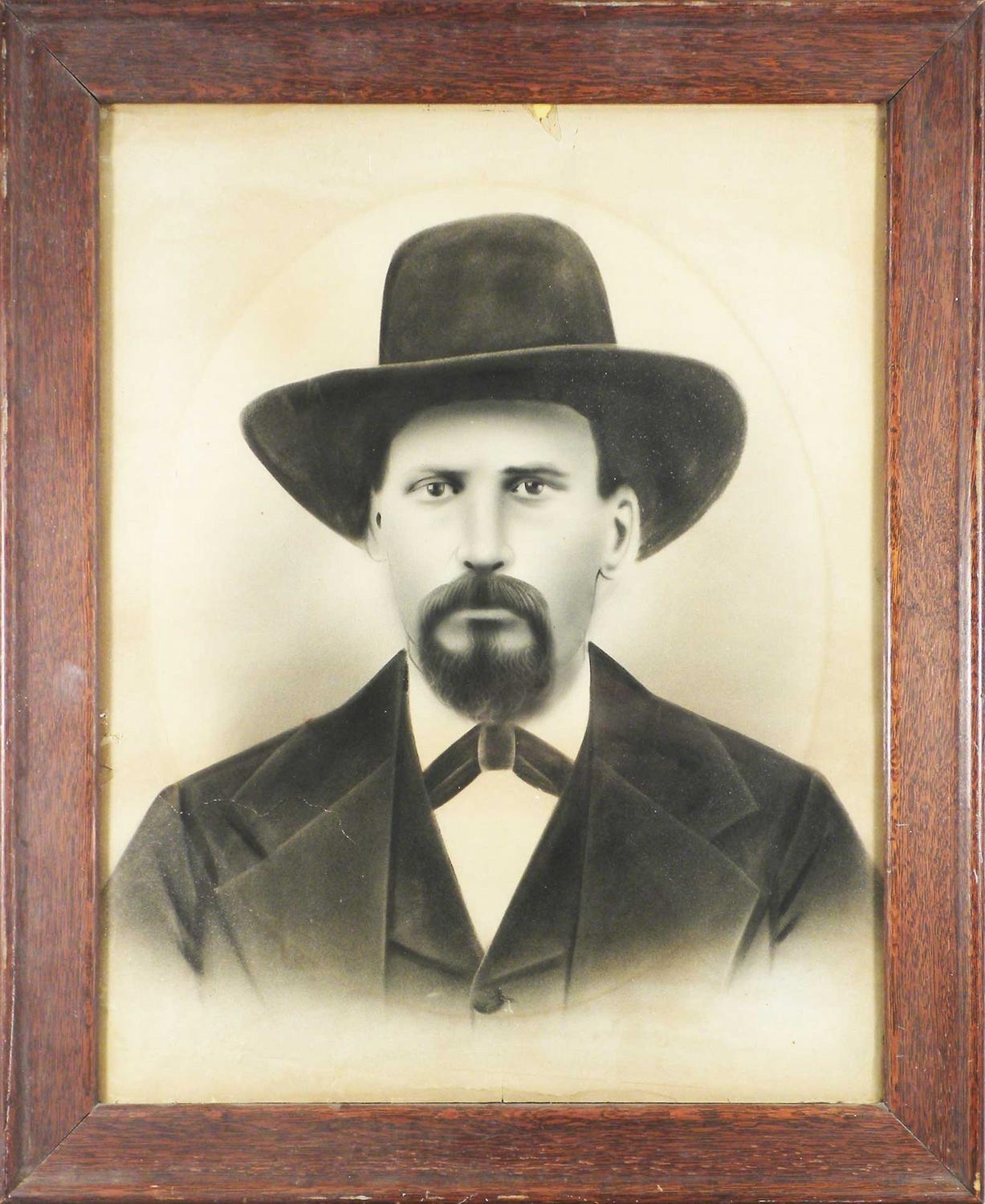 Early Framed Photo of Oklahoma Pioneer. Paper loss at 12:00 otherwise good condition. 19 1/2 X 23 3/4 inches overall.