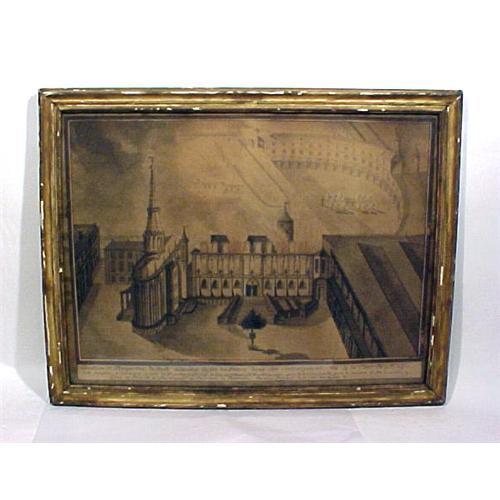 Unsigned (French 18th/19th Century) 1776 Fire at the Palace. This is a fabulous watercolor of the large palace ablaze showing several different perspectives with a bottom legend that reads ?Elevation et Perspective de Toute letendue du Feud u Palais dans Son Embazement?Janier 1776?? Overall it measures 19? x 25?. Condition: Examined out of frame - One margin crack to the side, some minor paper loss, very toned. I was very excited about acquiring a good amount of antiques from the Woolworth Family and I?m happy to present them to you. Here is a little history of the Woolworth Family: During the late 19th and early 20th Century the Woolworth Department Stores were one of the most famous names in department stores both here and in Europe. Everyone growing up remembers the Woolworth Five & Dime store in their town. In the early 20th century, one branch of the Woolworth family came to Maine and acquired hundreds of acres of land on beautiful Cobbossee Lake in Monmouth, Maine. Over the years, the compound has grown to approximately twenty-six buildings, some of which were filled with antiques collected all over the world and with a discerning eye.