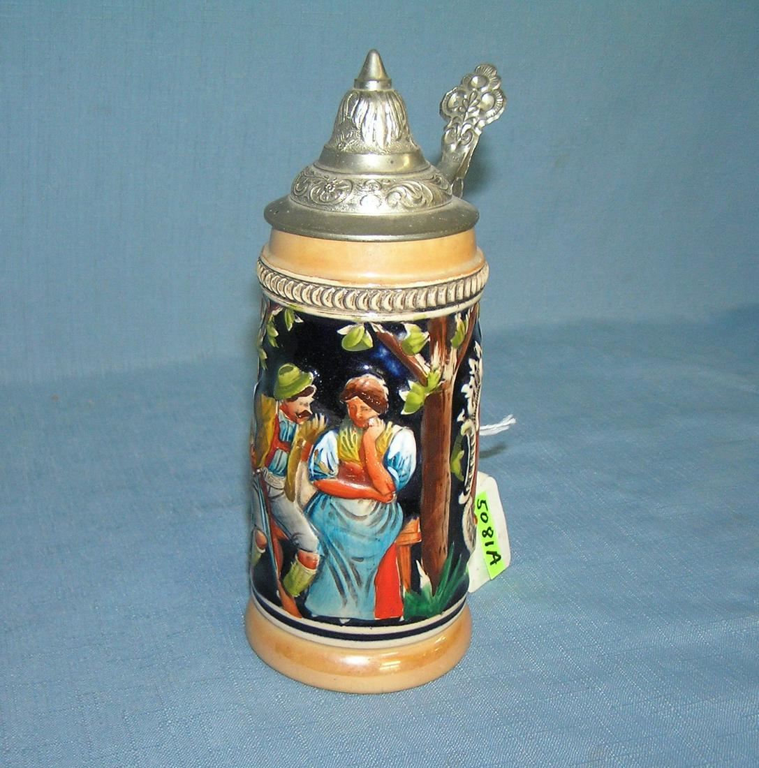 Vintage German beer stein featuring a couple on front with male in hunting outfit est. value $100.00-$125.00
