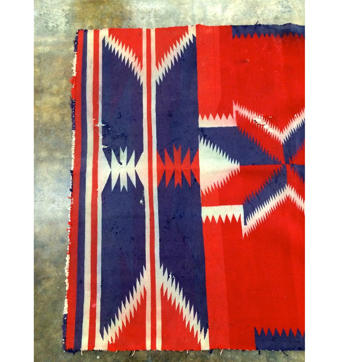 This old Navajo, Germantown weaving appears to be from the early part of the Germantown era (circa 1890s). There are a few condition issues, but it is a very colorful and nicely done weaving. Please look closely at pictures. It measures approximately 48” wide by 65” long.