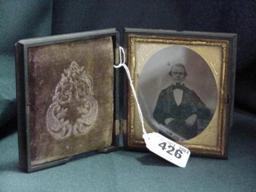 Early Glass Plate Photograph In Ornate Composition Case £40-50