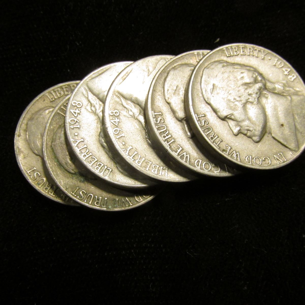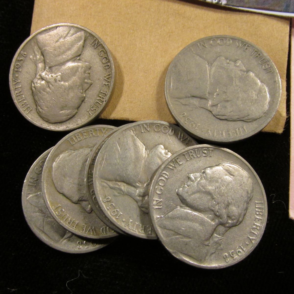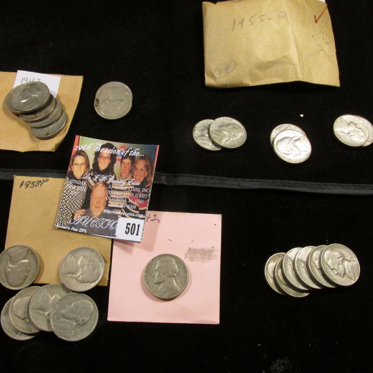 Early Group of Jefferson Nickels dating back to 1938. Includes (6) 1938 P, 42 P, (5) 47P, (2) S, (6)