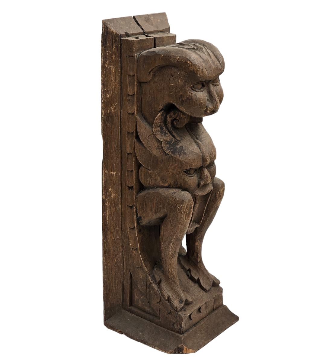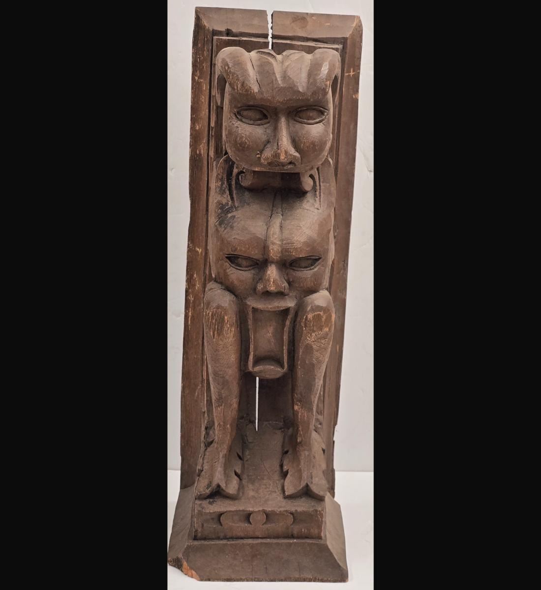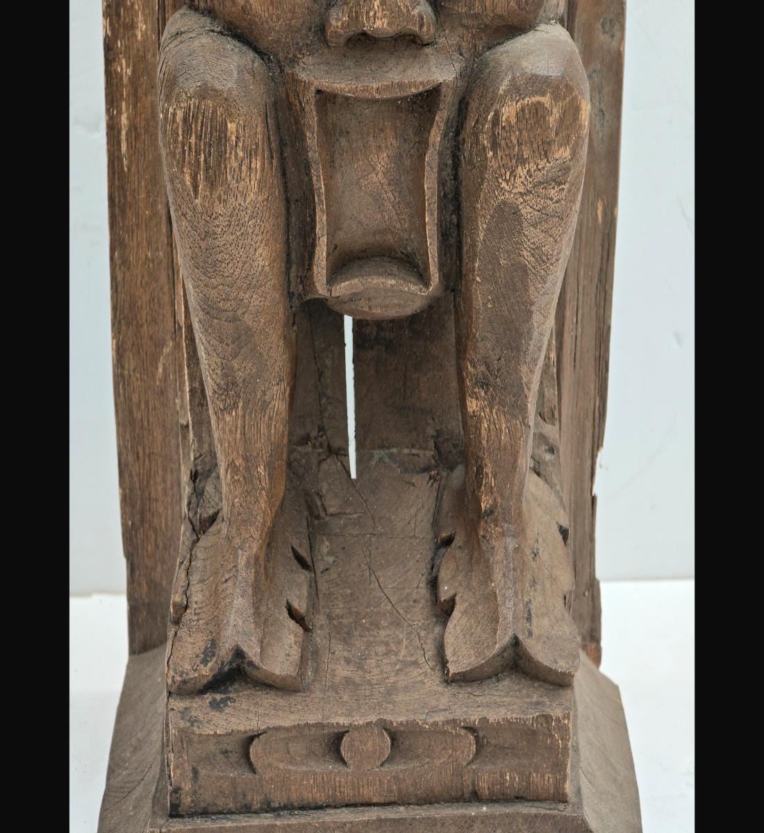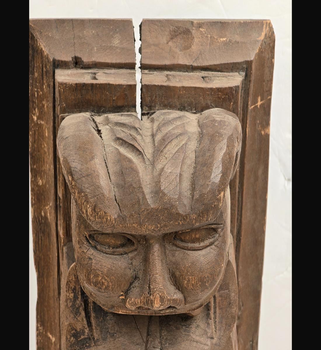 Early Hand Carved Wooden Architectural Figural Carving Part Of A Column Probably