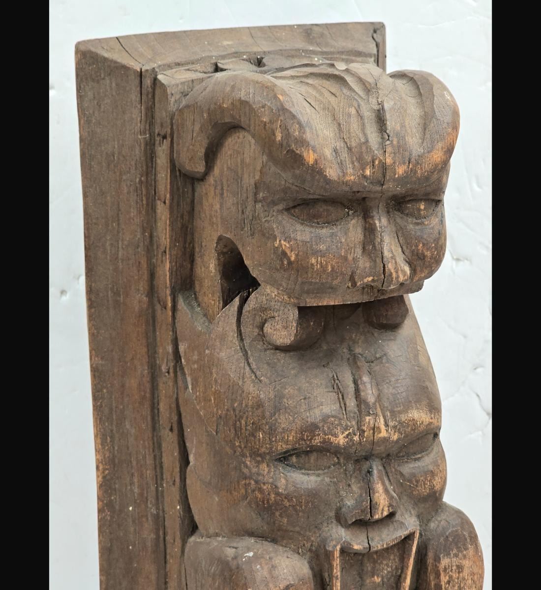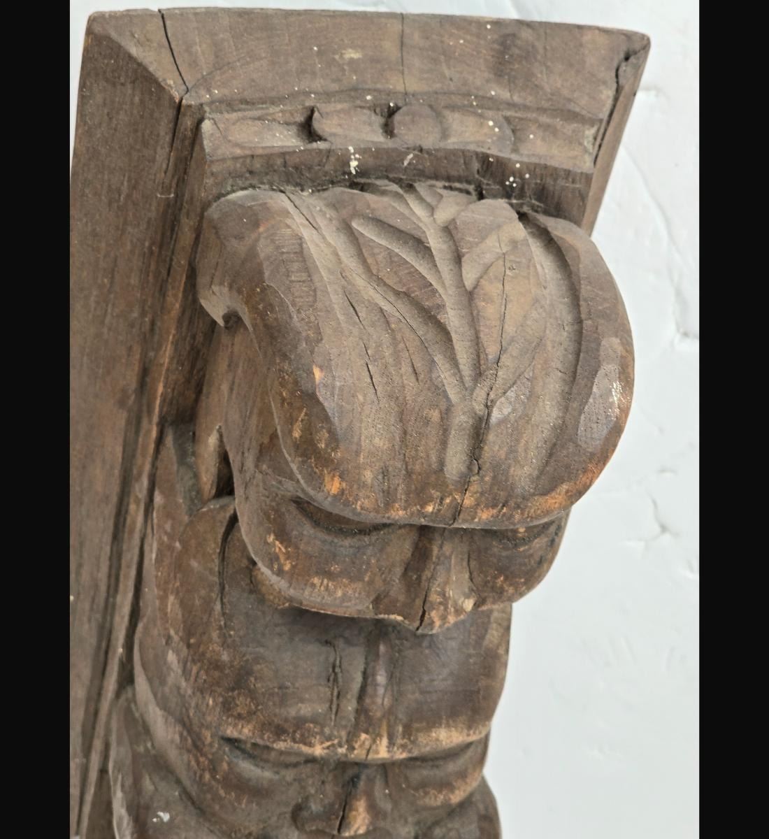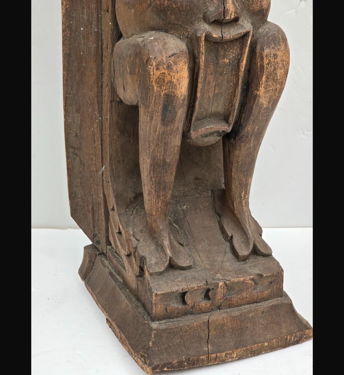 Early Hand Carved Wooden Architectural Figural Carving Part Of A Column Probably