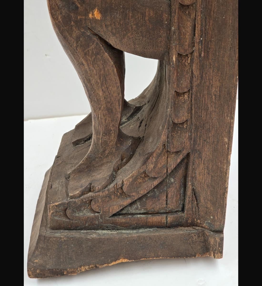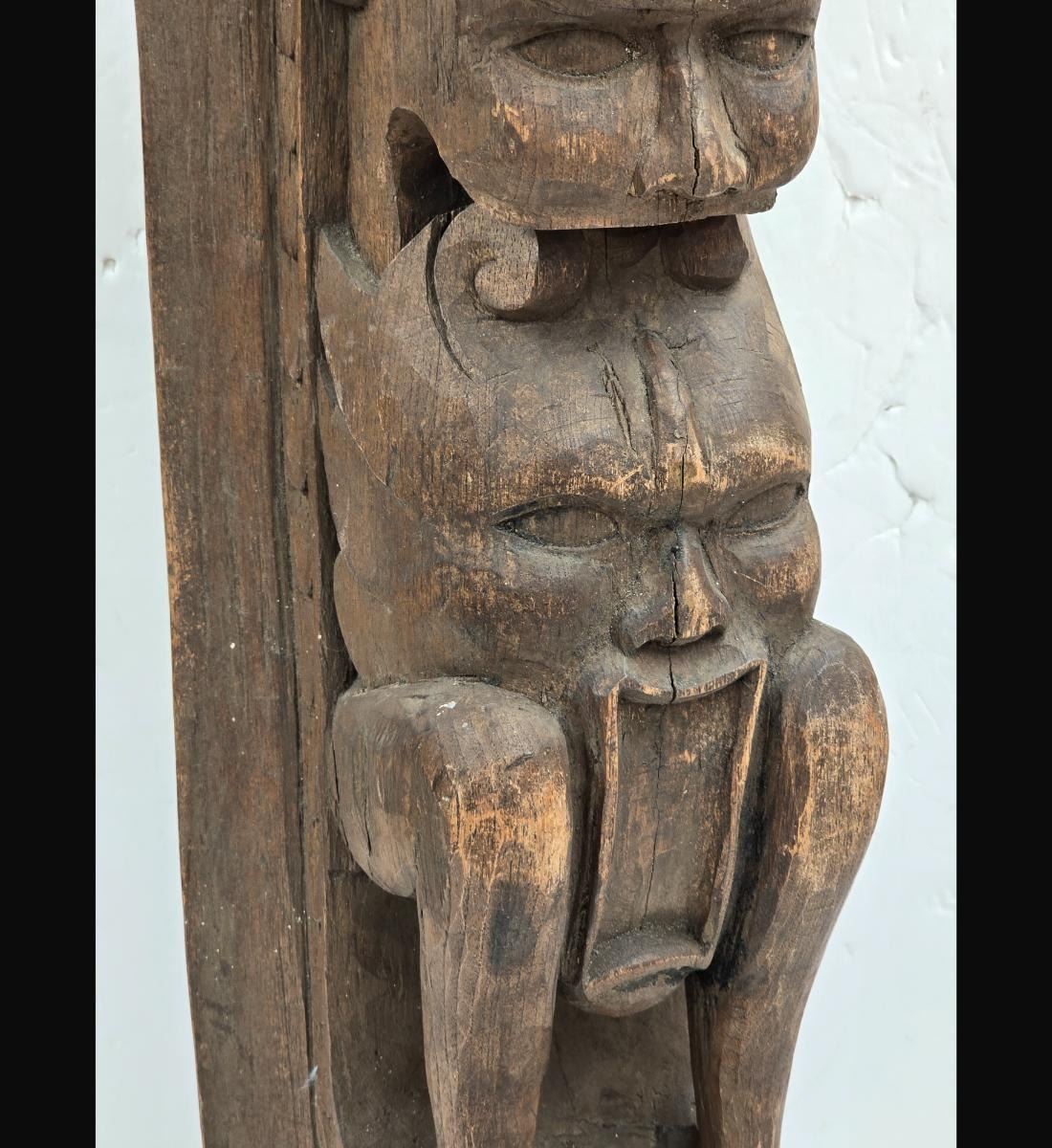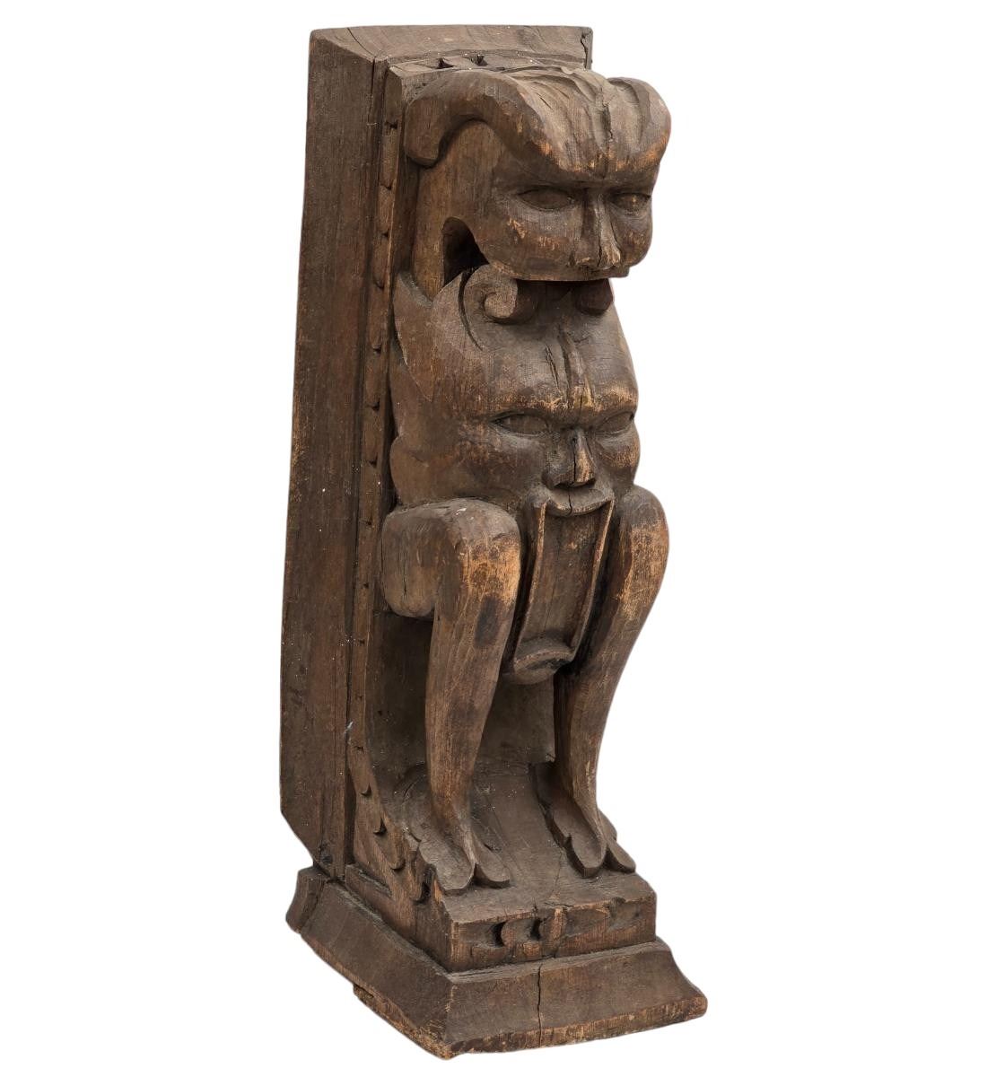 Early Hand Carved Wooden Architectural Figural Carving Part Of A Column Probably