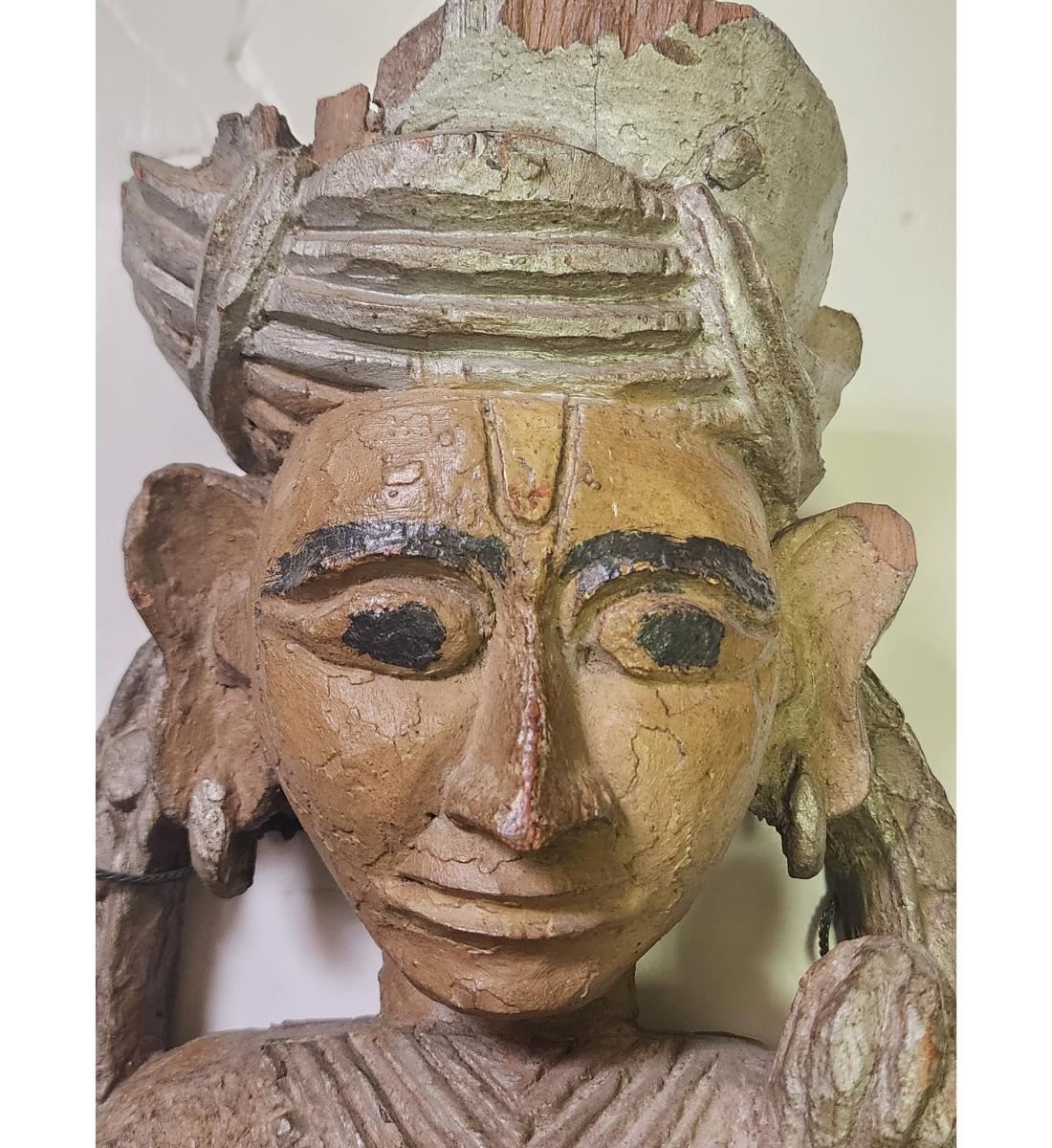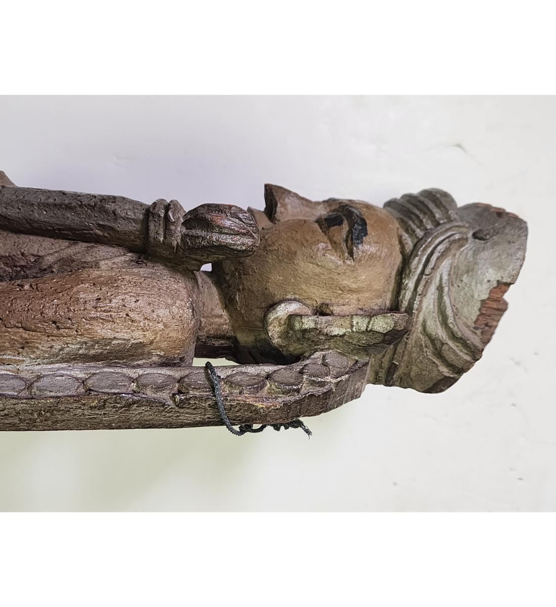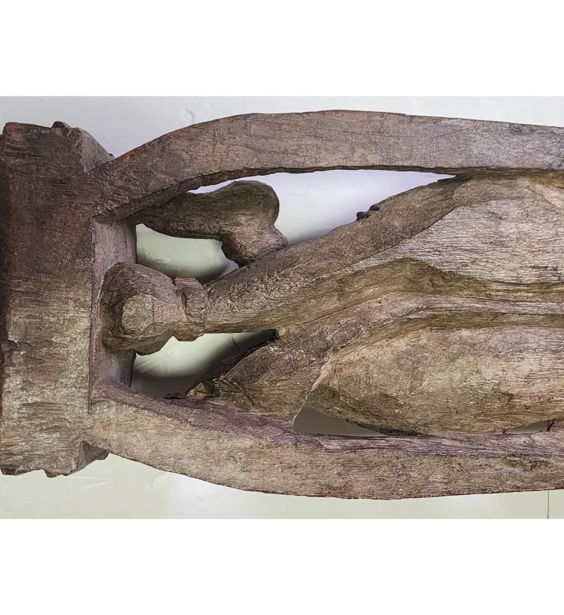PROBABLY INDIA-Early Hand Carved Wooden Architectural Figural Carving Part Of A Column Probably. Measure 34" Long. Provenance: One Person Private Estate Central Florida.