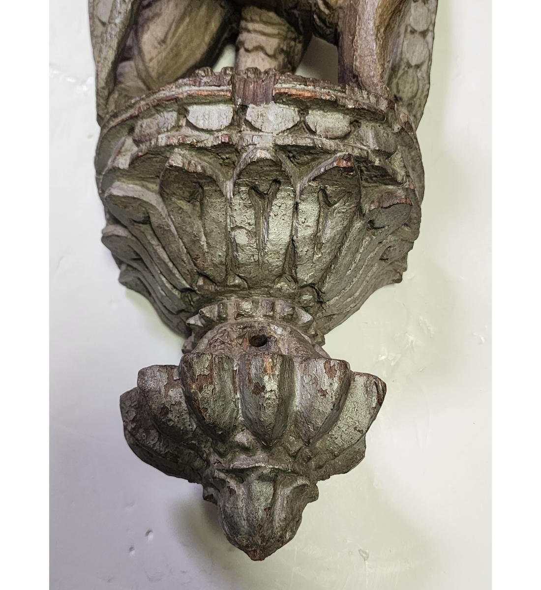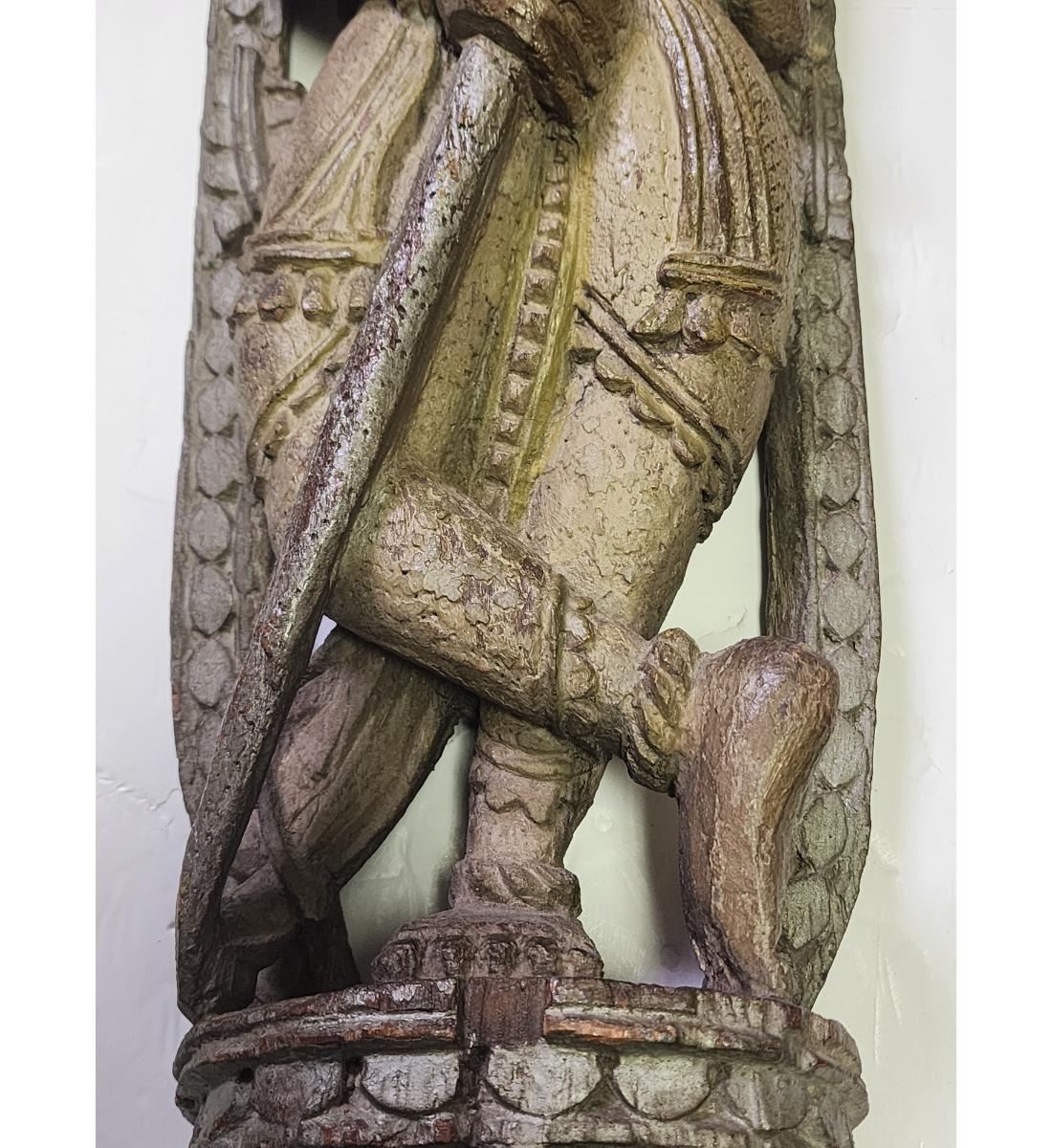 Early Hand Carved Wooden Architectural Figural Carving Part Of A Column Probably