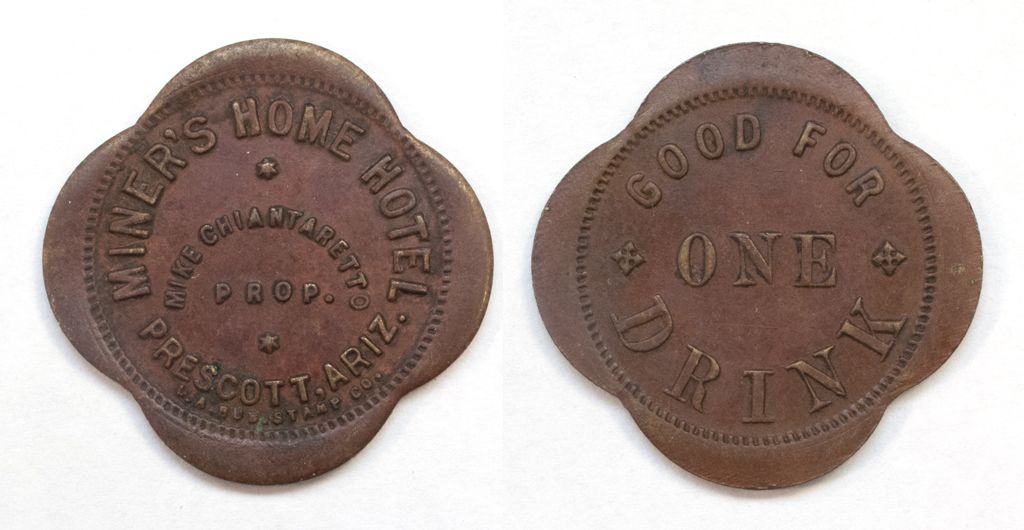 MINER's HOME HOTEL // ONE DRINK Scalloped (4) Brass - used from 1909-1914.