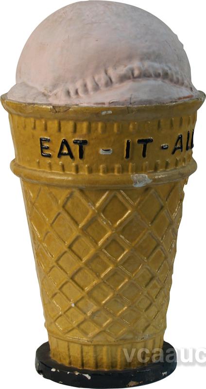 Early Ice Cream Parlor Countertop "EAT-IT-ALL" Ice Cream Cone Figure Sign - 19" tall