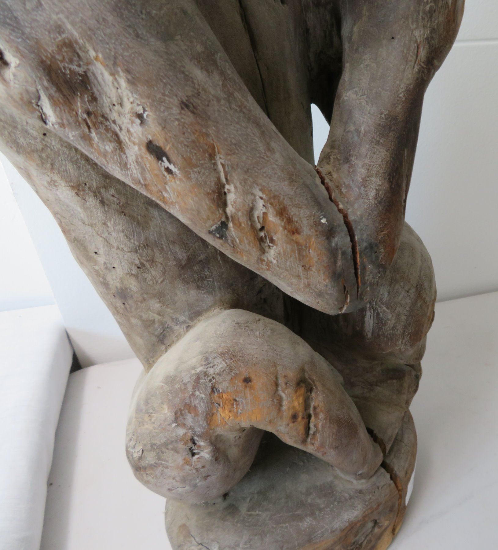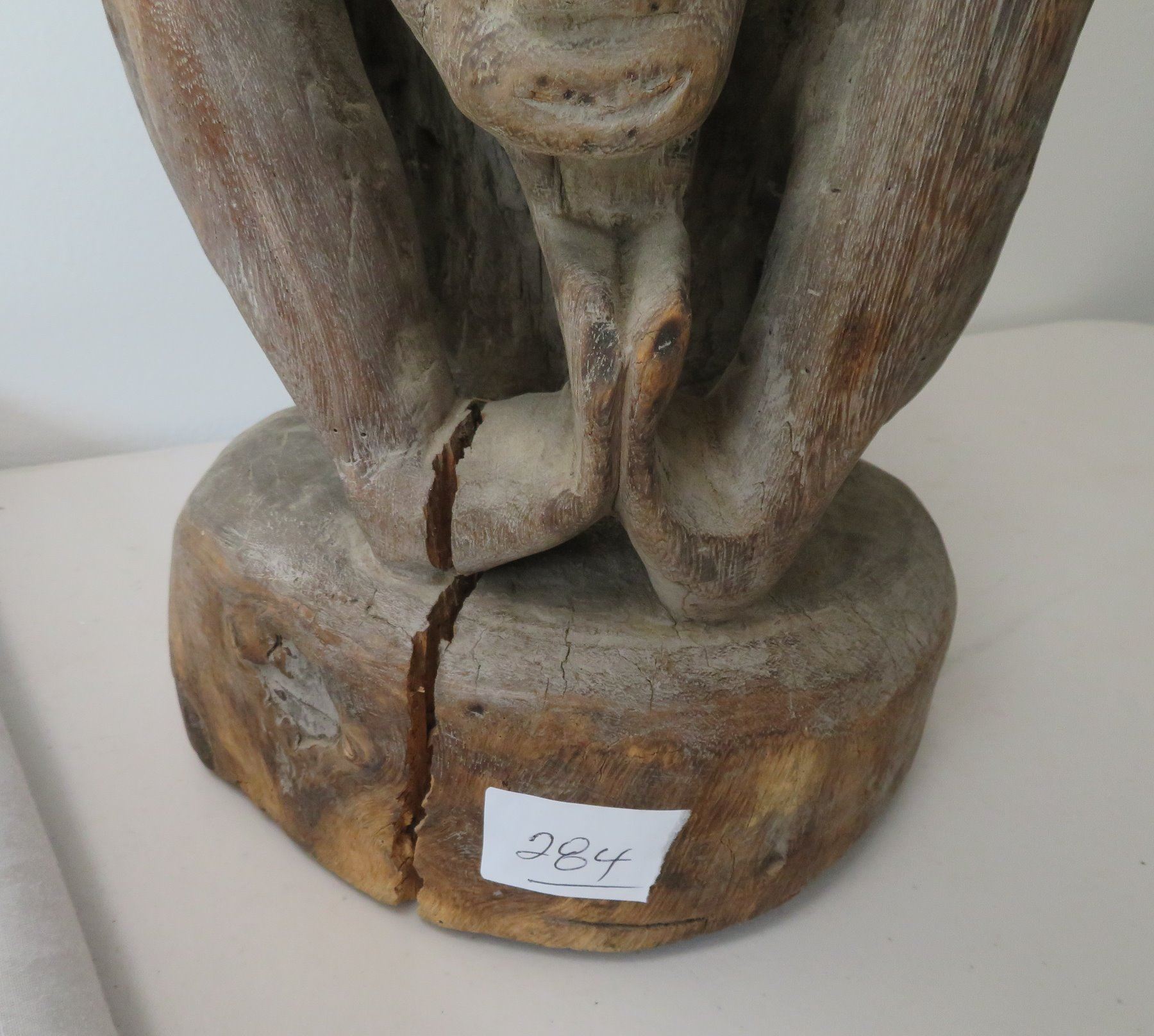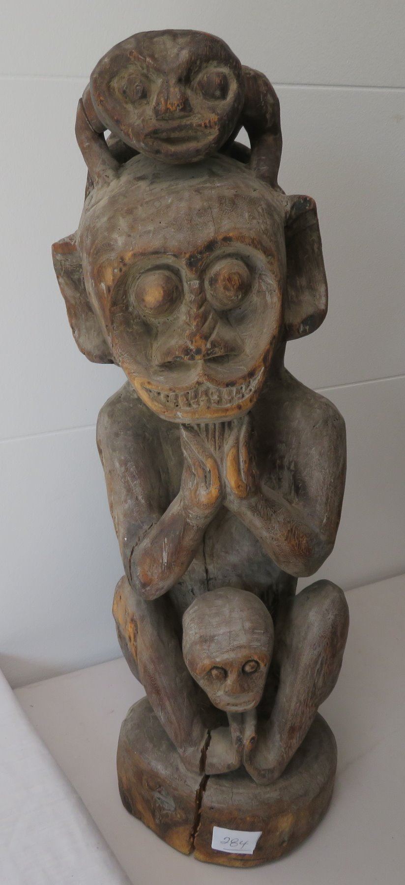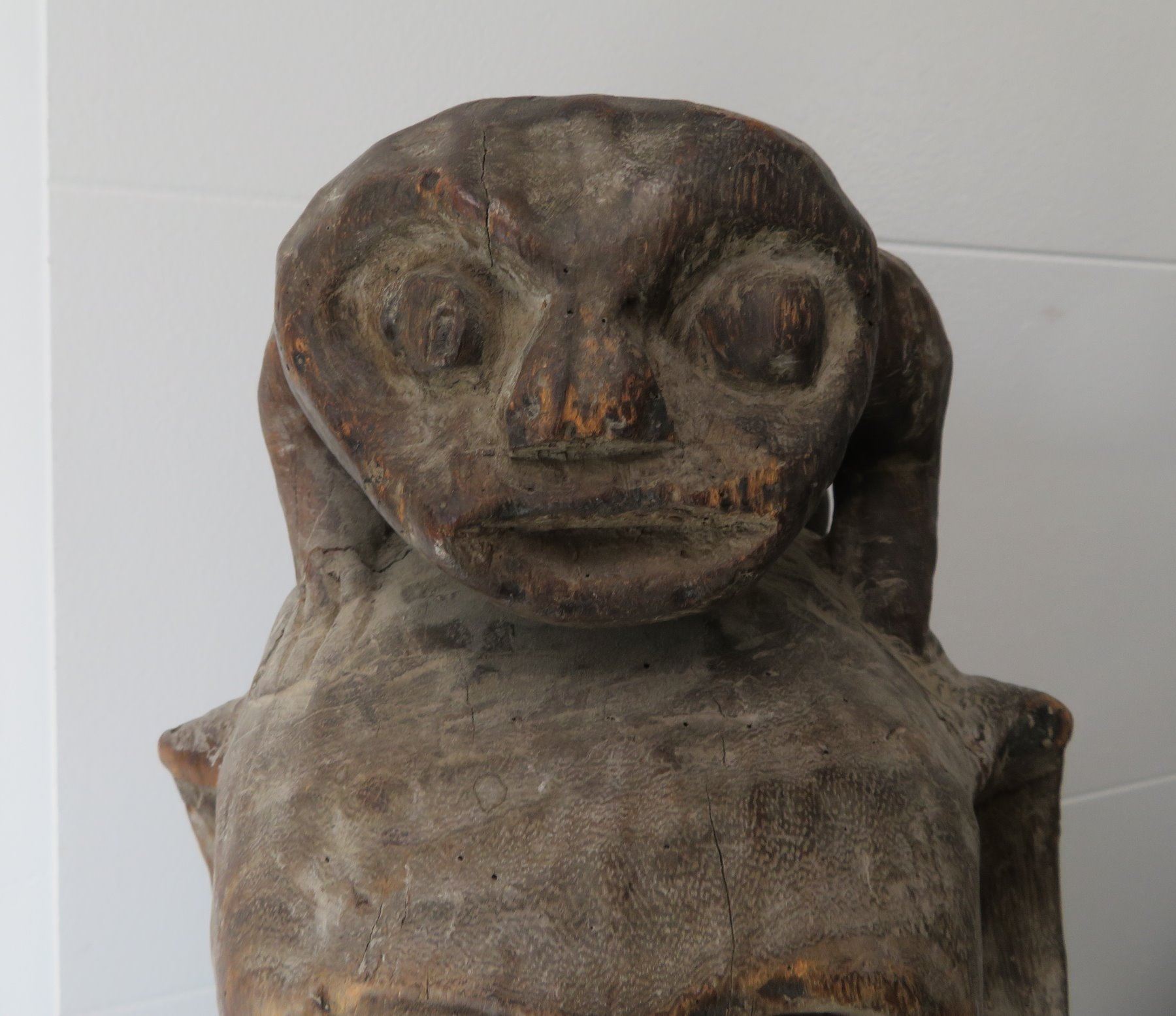 Early Indonesian Carving, c. 1900. Made of hardwood, the item measures 26" x 9" x 8". Dayak. Condition: Has a couple cracks, see images. Shipping: $80.00 USA estimate only, due to heavy weight, size and value, insured w/signature.