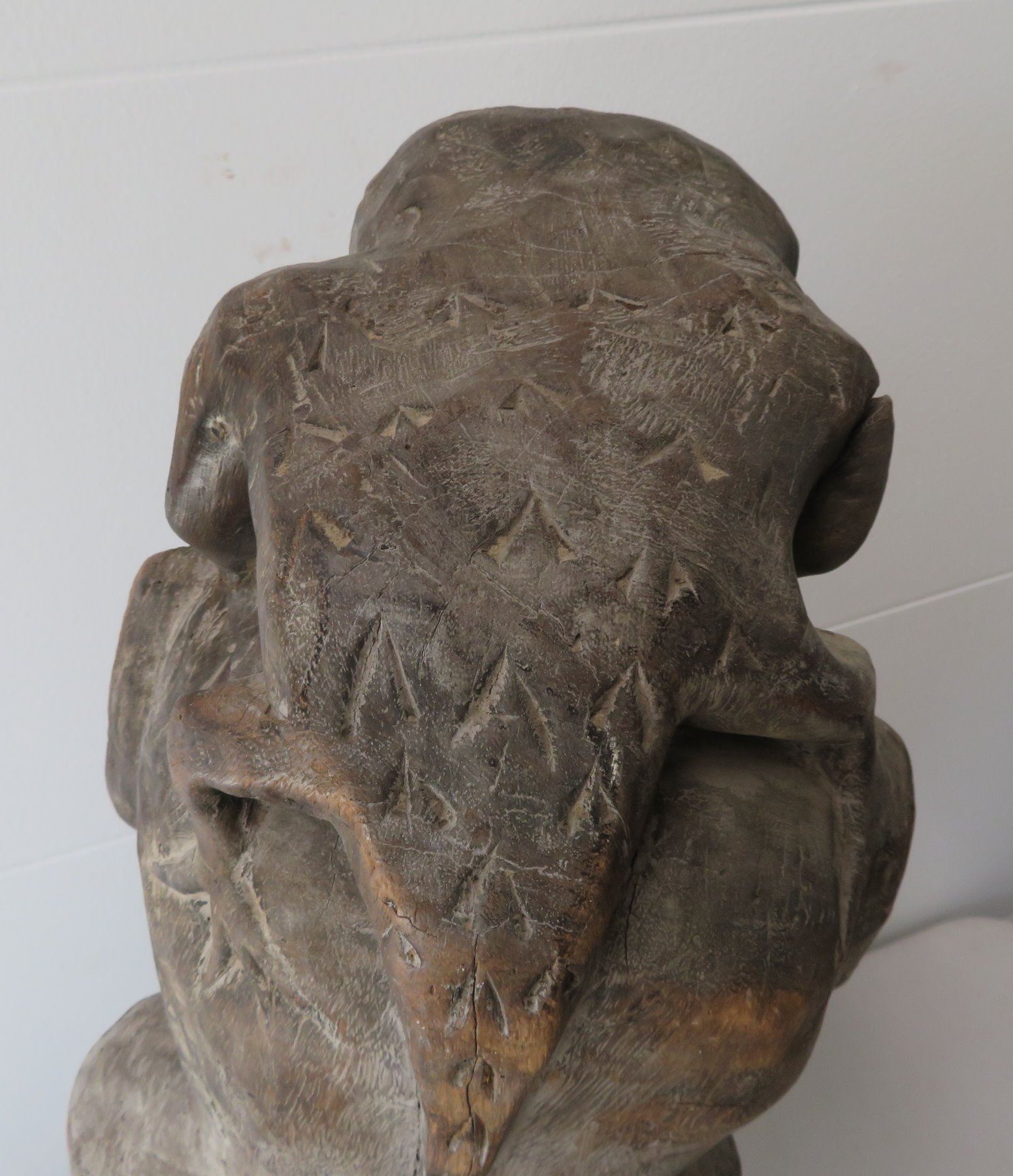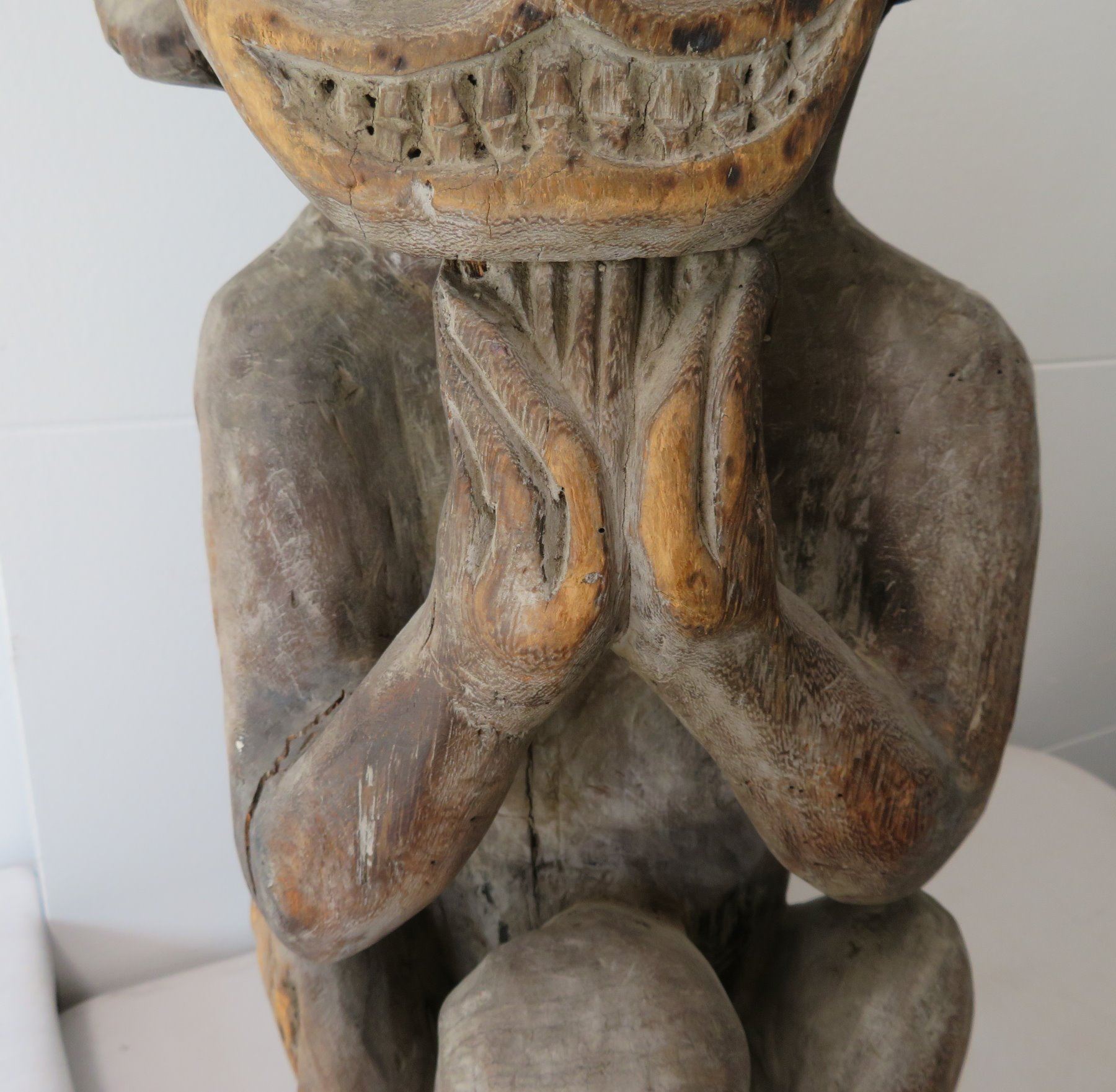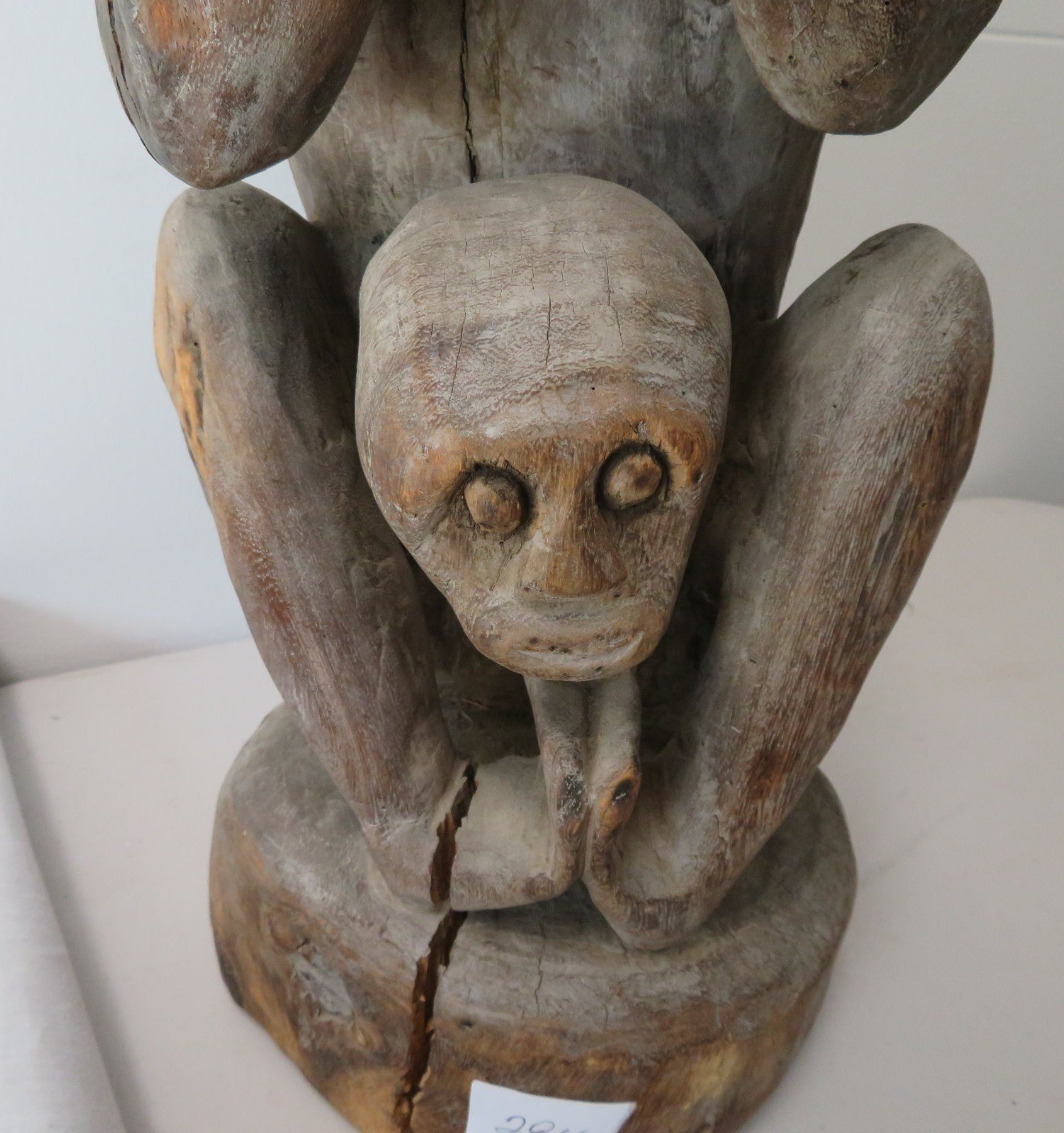 Early Indonesian Carving, c. 1900. Made of hardwood, the item measures 26" x 9" x 8". Dayak. Condition: Has a couple cracks, see images. Shipping: $80.00 USA estimate only, due to heavy weight, size and value, insured w/signature.