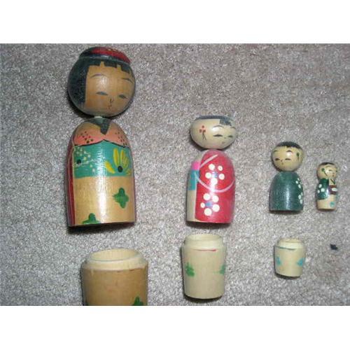 Early Japan Stack Nesting Wooden Dolls Female. There are 4 dolls with the tallest one marked Made in Japan. They have bobble heads. The painting is great. Dolls come from a smoke free environment. Buyer to pay $10 for shipping, handling, and insurance. Thanks for viewing.