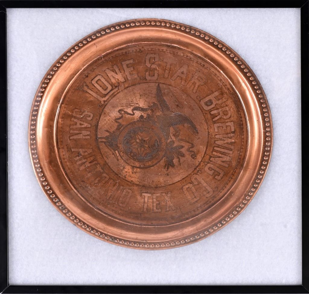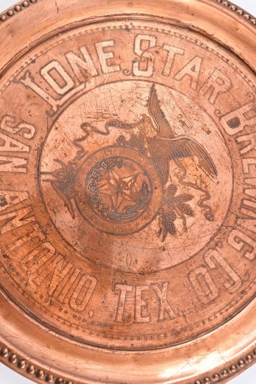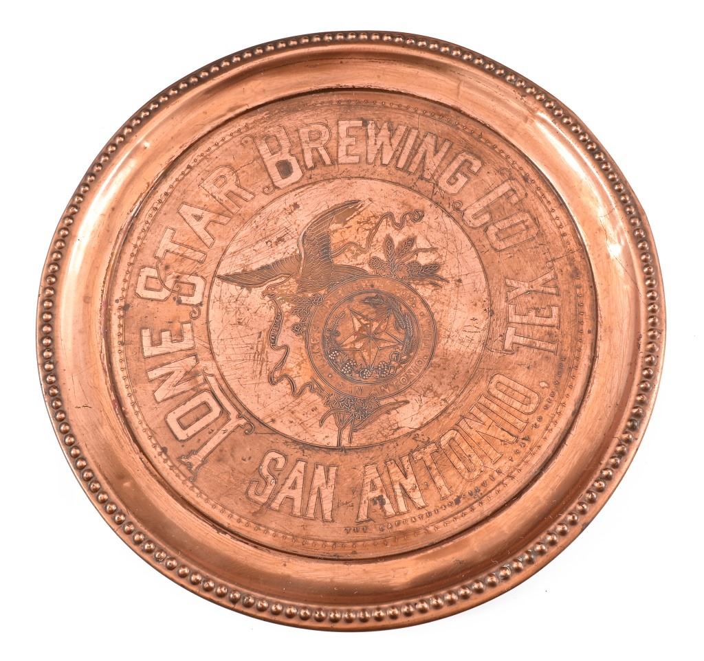 Pre-prohibition Lone Star Beer. Manufactured by The Carpathian Silver Tray Co, New York. 12" diameter.