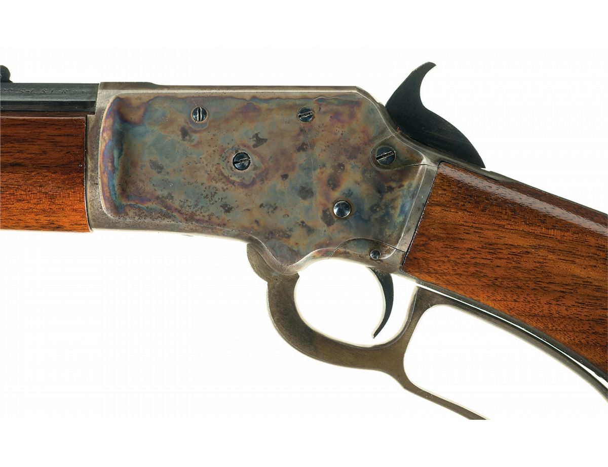 Very fine, 90% of the original blue finish remains with some high edge and handling wear along with scattered dings and minor scratches. The casehardened components retain 65% of the original case colors with some handling wear, some scattered minor freckling and the lower tang has been cleaned with an abrasive. The front sight bead is absent. The wood is fine as revarnished with some scattered dings and scratches. Mechanically excellent.