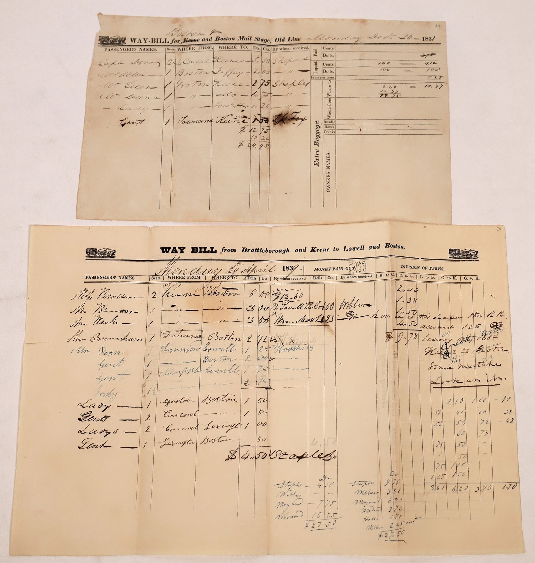 1839 from Brattleborough and Keene to Lowell and Boston, 1831 Boston and Boston Mail Stage, Old Line. State:Massachusetts City: Date: Provenance: