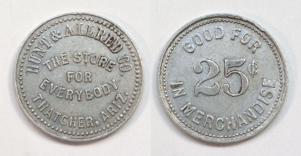 HUNT & ALLRED CO. // 25¢ Aluminum - used from 1910-1918