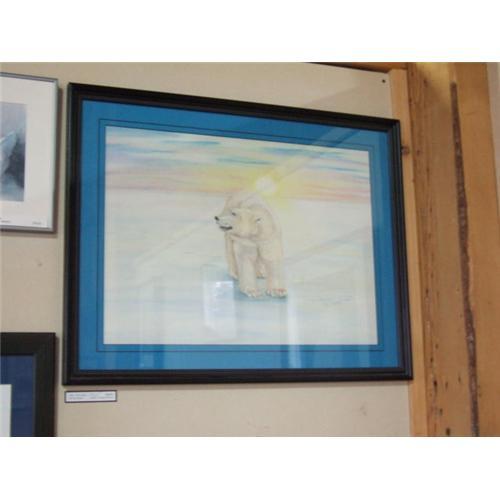 Mixed Media Polar Bear "Early MOrning Traveler" by Natalie Wilson. Matted and Framed. Excellent Condition. 22x27