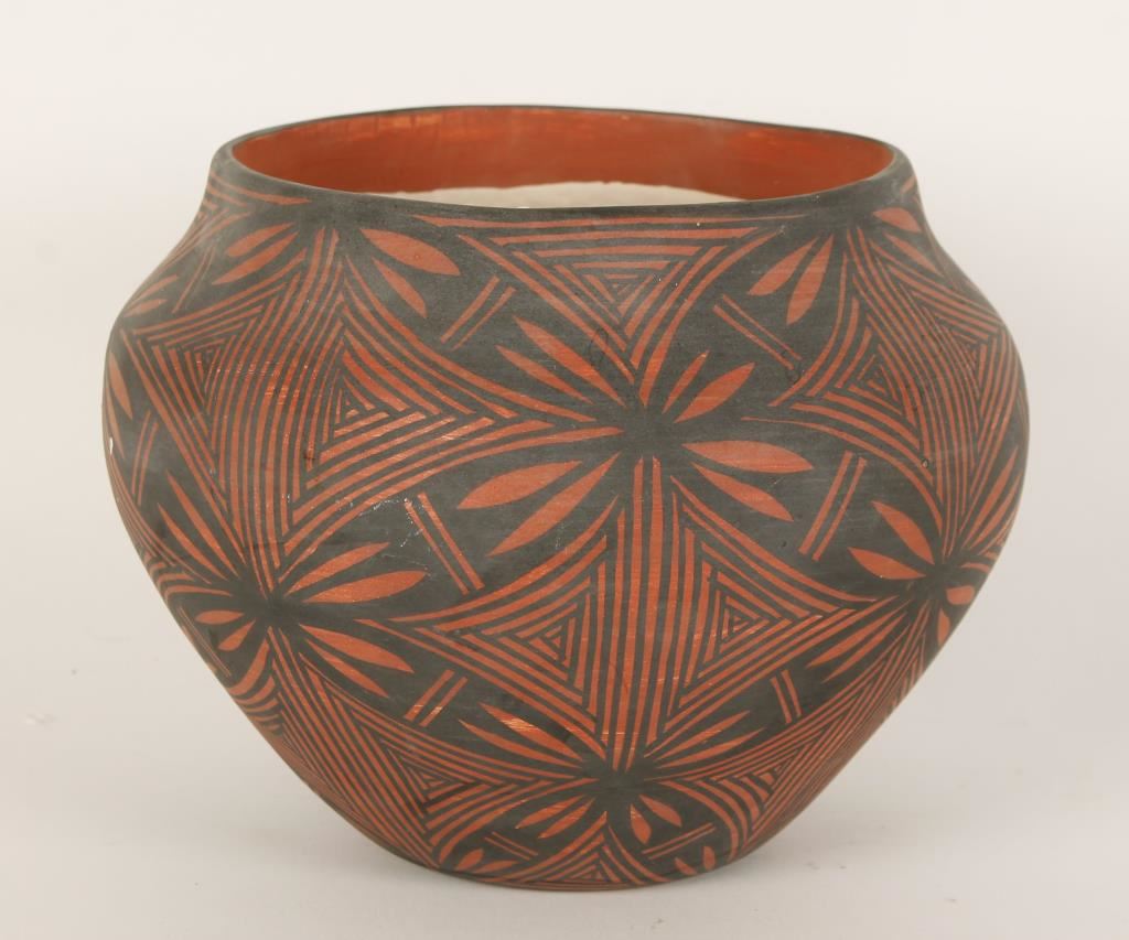 design in black and terra cotta hand painted colors. Measures 7.5" x 6.5"