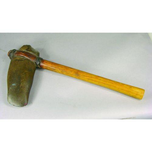 Very Early Native American Indian Tomahawk. Large stone head. Handle is 17 inches, the head is 8 3/4 inches long.