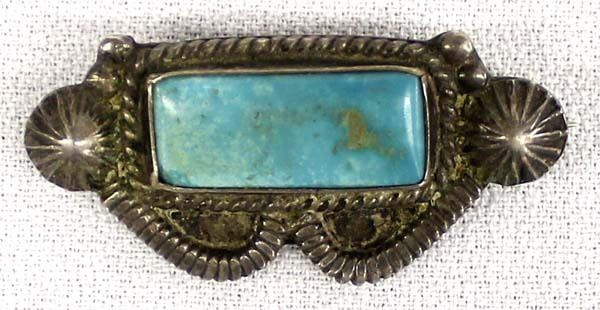 Early Native American Navajo Sterling Turquoise Pin, measures 1'' x 1.75'', rectangular turquoise cab measures 1''L x .5''W