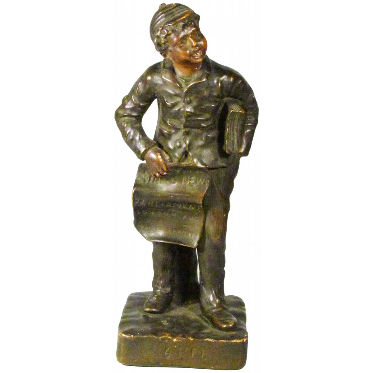 Early Newsboy Figure for Boston Evening News. Chalk figure. Very good original condition. 13 1/4 inches tall.