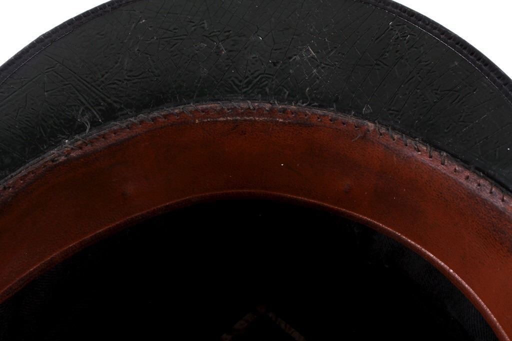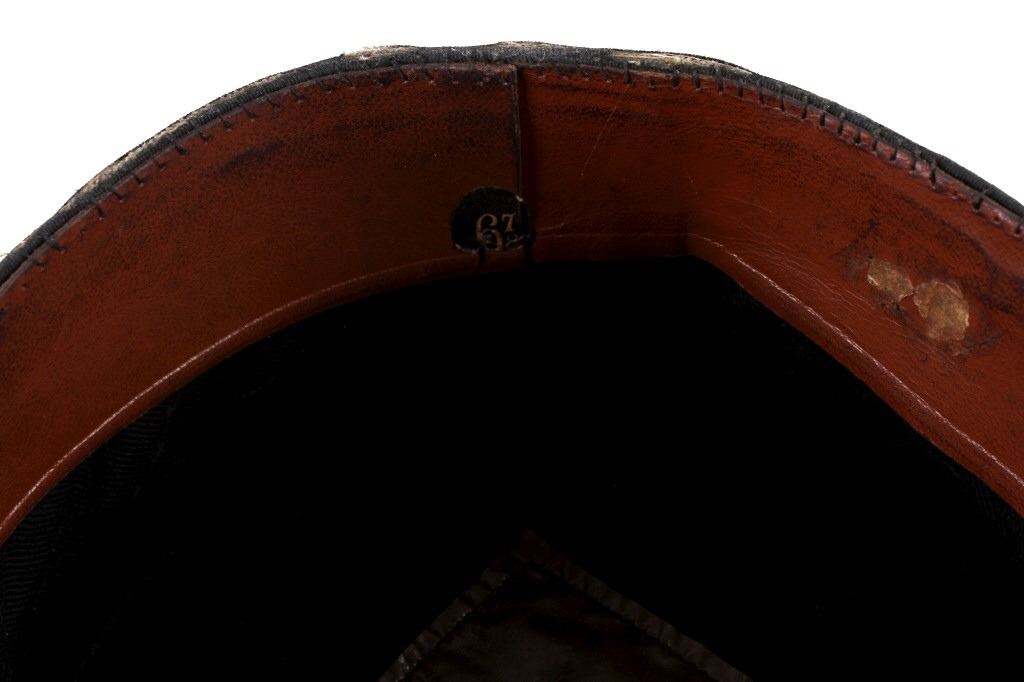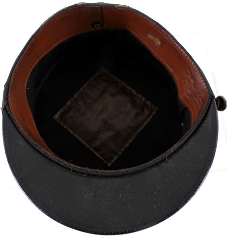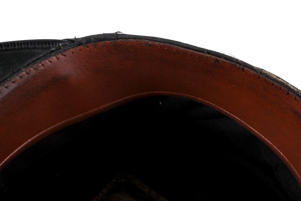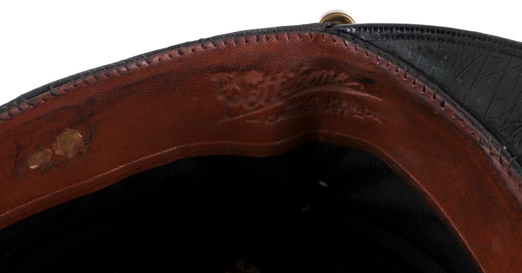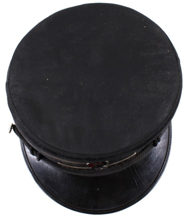 The lot features an early Northern Pacific Railroad Brakeman Cap collected in Northwest Montana. Northern Pacific Railroad, also referred to as Northern Pacific Railway or NPR, NP. The cap shows the original metal NP Brakeman badge along the front with ying and yang black and red NP logo above all caps BRAKEMAN rectangular plate. The hat also shows two nickel silver like NP original buttons on either side. The hat was made by The Pettibone company in Cincinnati as is marked on the inside of the leather band. The hat also shows a tag that reads the size of 6 7/8. The hat was likely from a Montana Depot and is in well preserved condition. The cap's circumference is 21"