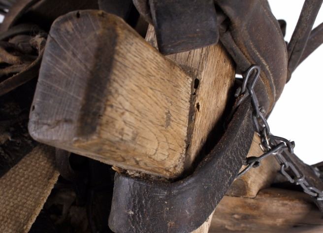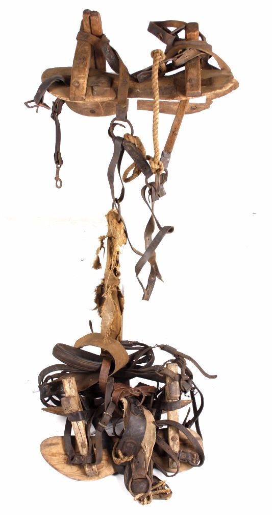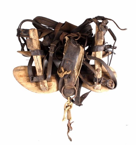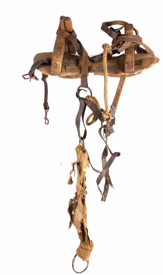 This lot features an early Oregon Territory pack saddles. these saddles. These pack saddles where used to secure loads of trade goods as they where transported around the Oregon Territory. The Territory of Oregon was an organized incorporated territory of the United States that existed from August 14, 1848, until February 14, 1859, when the southwestern portion of the territory was admitted to the Union as the State of Oregon. This pair of saddles also includes the original tack These two saddles , with both there history and state of preservation are truly museum quality pieces. Both saddles are in good condition for there age. Measure: 18" W X 11" D X 6" H
