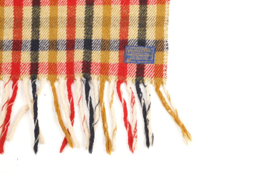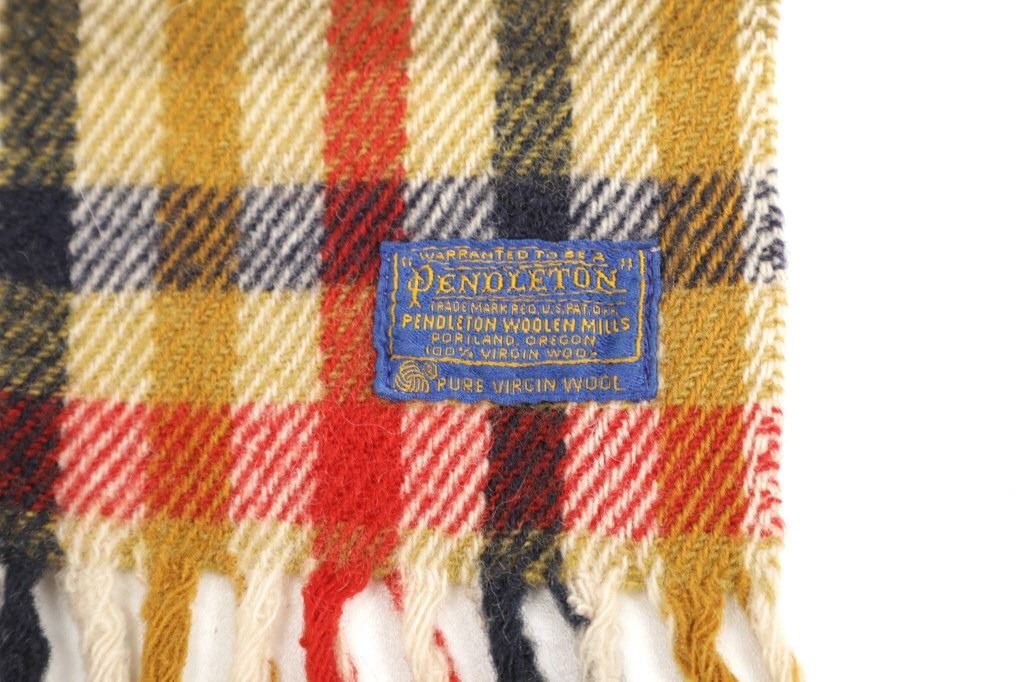 Featured in this lot is this hand woven woolen plaid fringe blanket circa 1950's from Pendleton. The blanket features a wonderfully and professionally crafted tightly woven woolen construction that shows a fringe on both sides of the blanket and plaid design. The condition of this of this hand woven blanket shows a well preserved stature that shows a tight weave and great coloration that shows a fringe that is complete and full. The measurements of this blanket is 67" x 44".