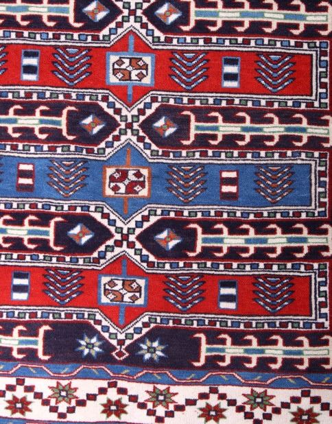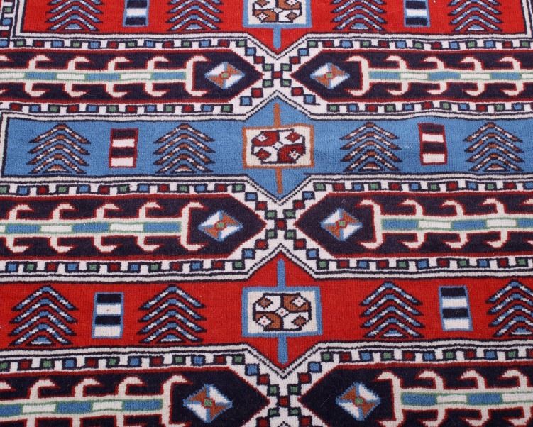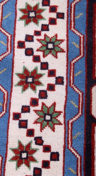 The lot features an exceptional tightly woven Persian rug, from circa 1900-1940's from the Qashqai region. The majority of Qashqai people were originally nomadic pastoralists, and some remain so today. The traditional nomadic Qashqai of Iran travelled with their flocks twice yearly to and from the summer highland pastures north of Shiraz roughly 480 km or 300 miles south to the winter pastures on lower (and warmer) lands near the Persian Gulf, to the southwest of Shiraz. The Qashqai are renowned for their pile carpets and other woven wool products. They are sometimes referred to as "Shiraz" because Shiraz was the major marketplace for them in the past. The wool produced in the mountains and valleys near Shiraz is exceptionally soft and beautiful and takes a deeper color than wool from other parts of Iran. This particular rug features a conglomeration of tribal motifs in a unique red and blue color scheme. The rug appears to have a silk, cotton wool weaving with excellent sheen and color. It is in very good condition and measures 77" x 46"; would be praised at $4000-5000 in a gallery setting.