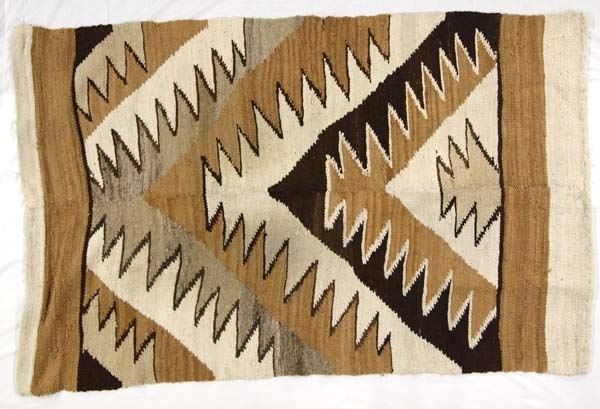 Early Peruvian Woven Textile, measures 44''W x 68''L, consists of 2 pieces woven on narrow loom and sewn together, natural dyed hand spun wool