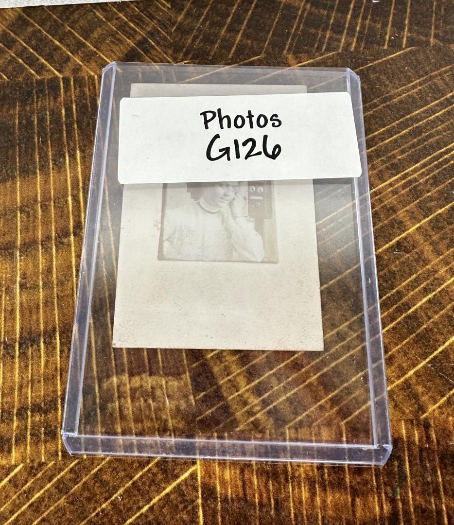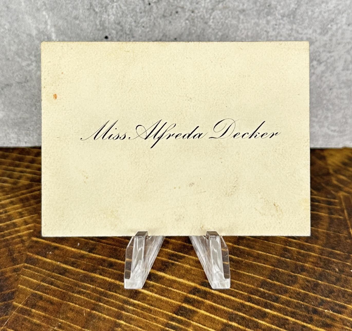 Woman is identified as Miss Alfreda Decker. Possibly an early calling card. 2" by 2 7/8".