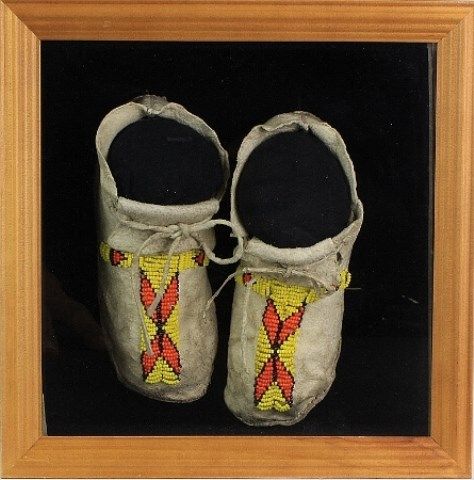 with beaded tops in orange, blue and yellows, all in excellent condition, nicely mounted in shadow box, each 6" long. Est. 200-400