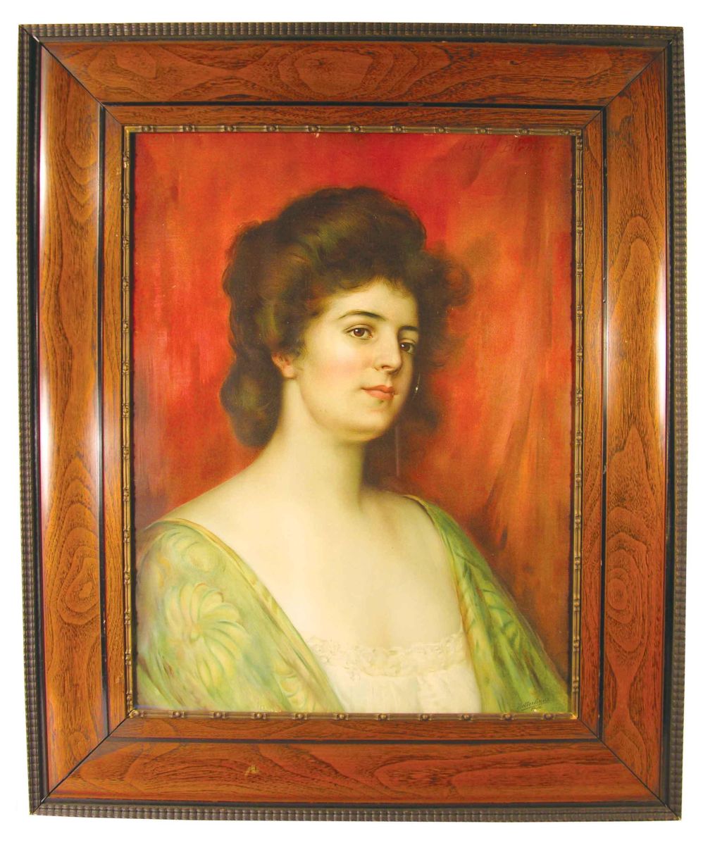 Early Print of Victorian Woman, Carle Blenner artist, ca.1900. Beautiful oak frame. Excellent condition. 28 1/2 X 34 1/4 inches overall.