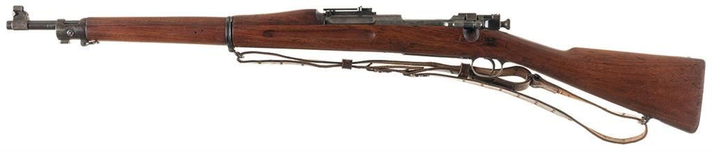 "1-06" dated barrel, "1908" stock, brown leather sling.