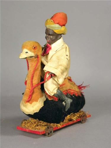 Early Pull Toy, man with turban riding a goose. Good condition. 7 1/2 X 8 1/2 inches
