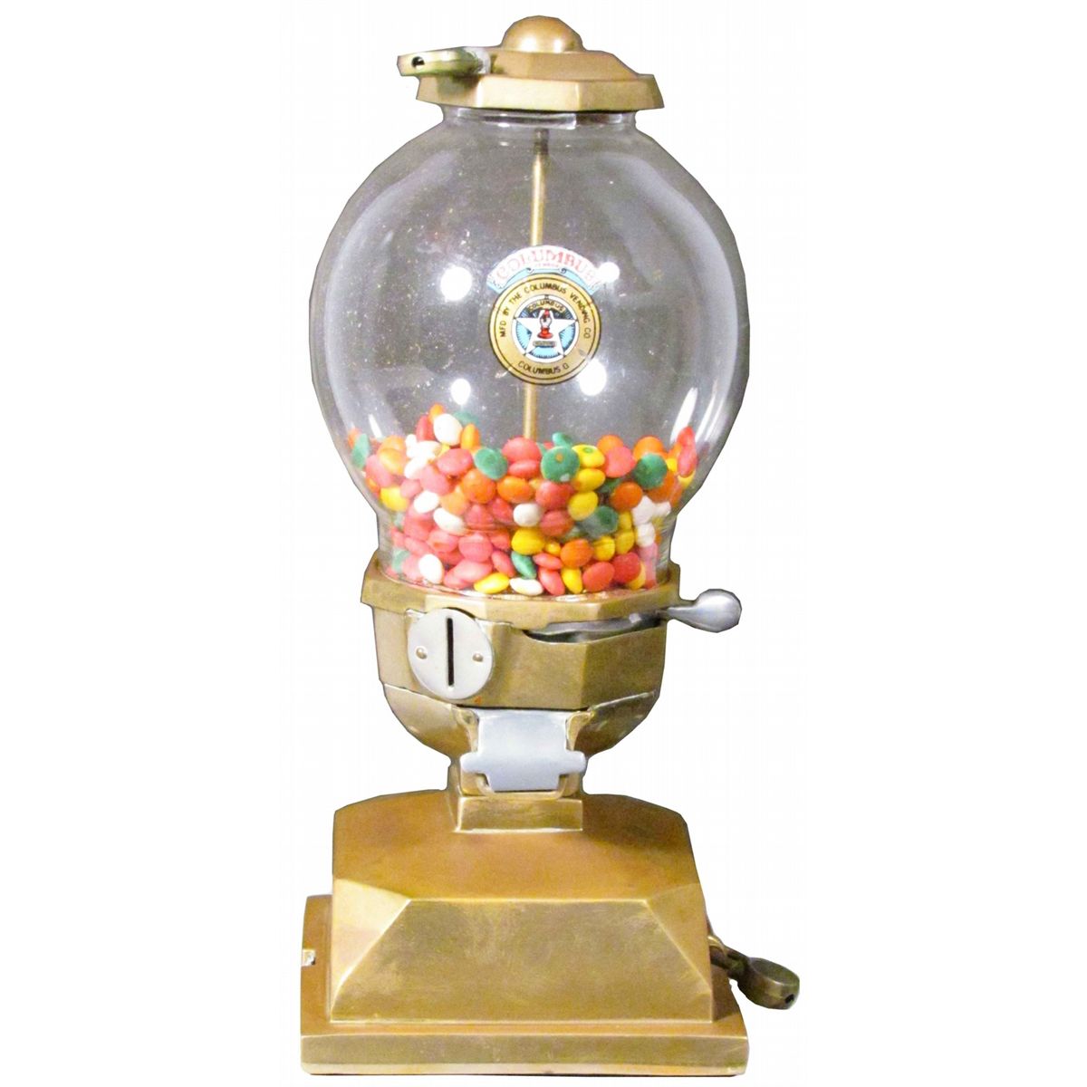 1960,s Columbus "E" Gum Vendor. Brass. Excellent condition, comes with key. 11 inches tall.