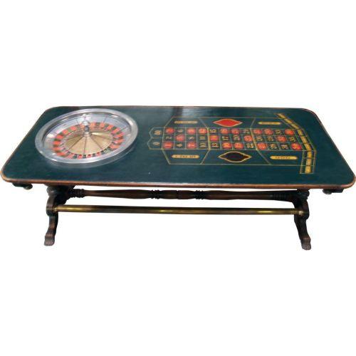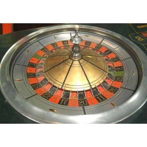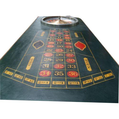 Early Roulette Table w/ Oil Cloth Layout Wheel is Aluminum w/ Brass Inlays