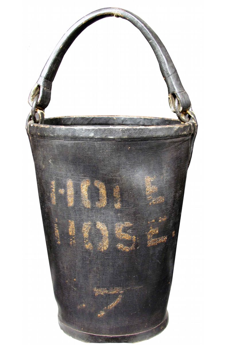 Early Rubber Fire Bucket. Marked Home Hose 7. Very good condition. 11 1/2 inches tall.