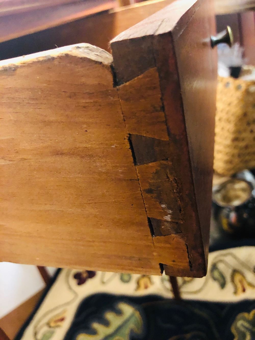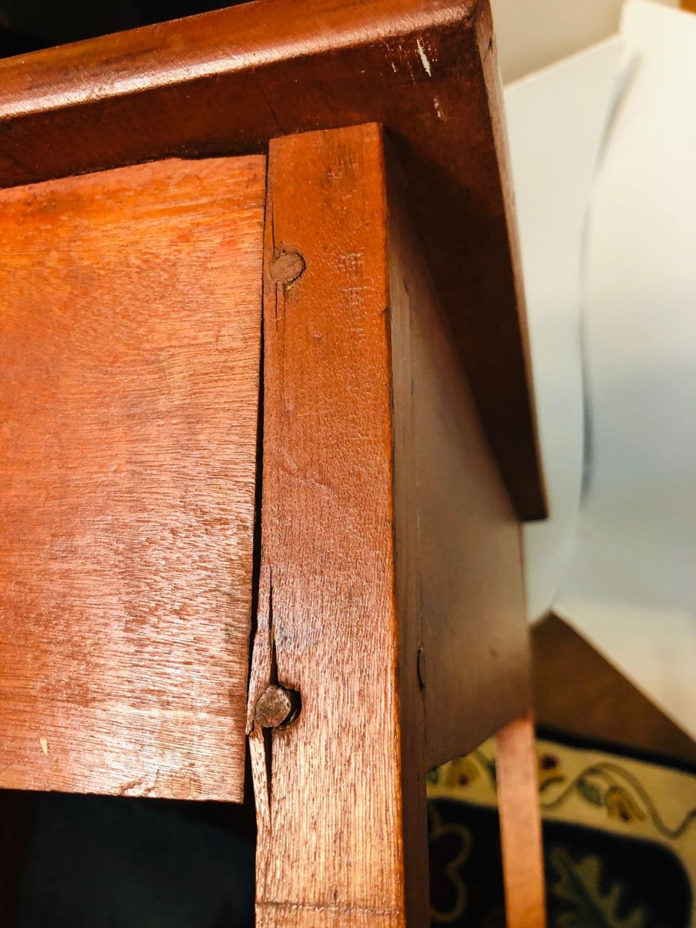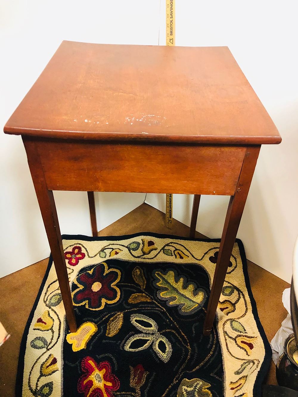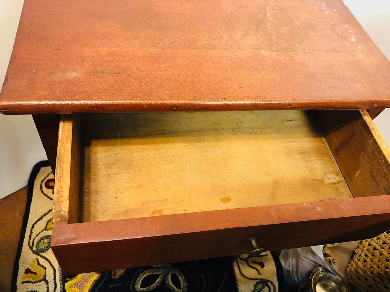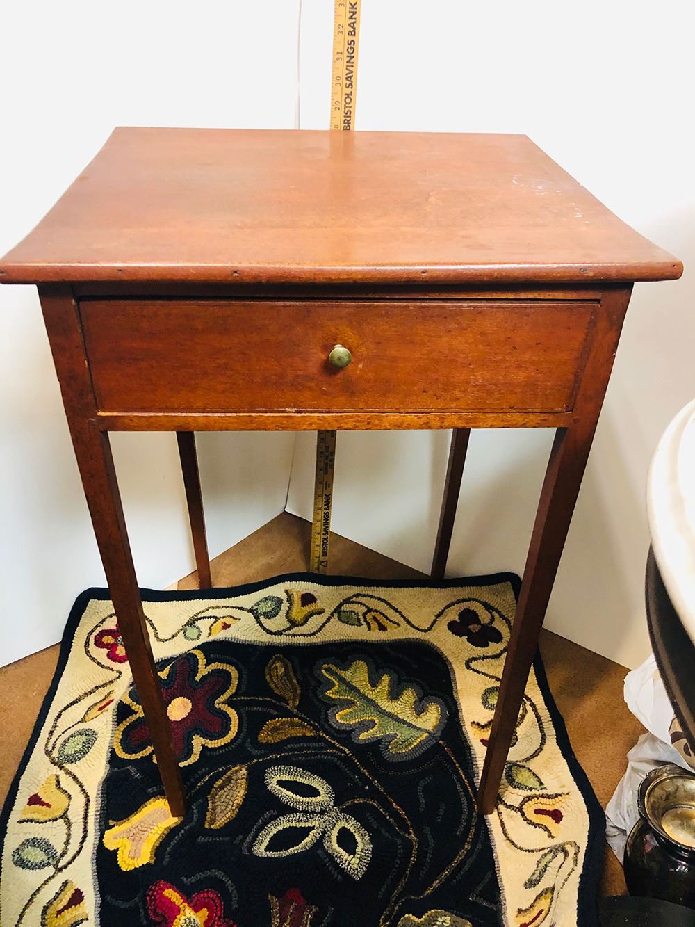Early side table with one drawer, dovetail, measures approx. 28 in tall x 17 in wide.