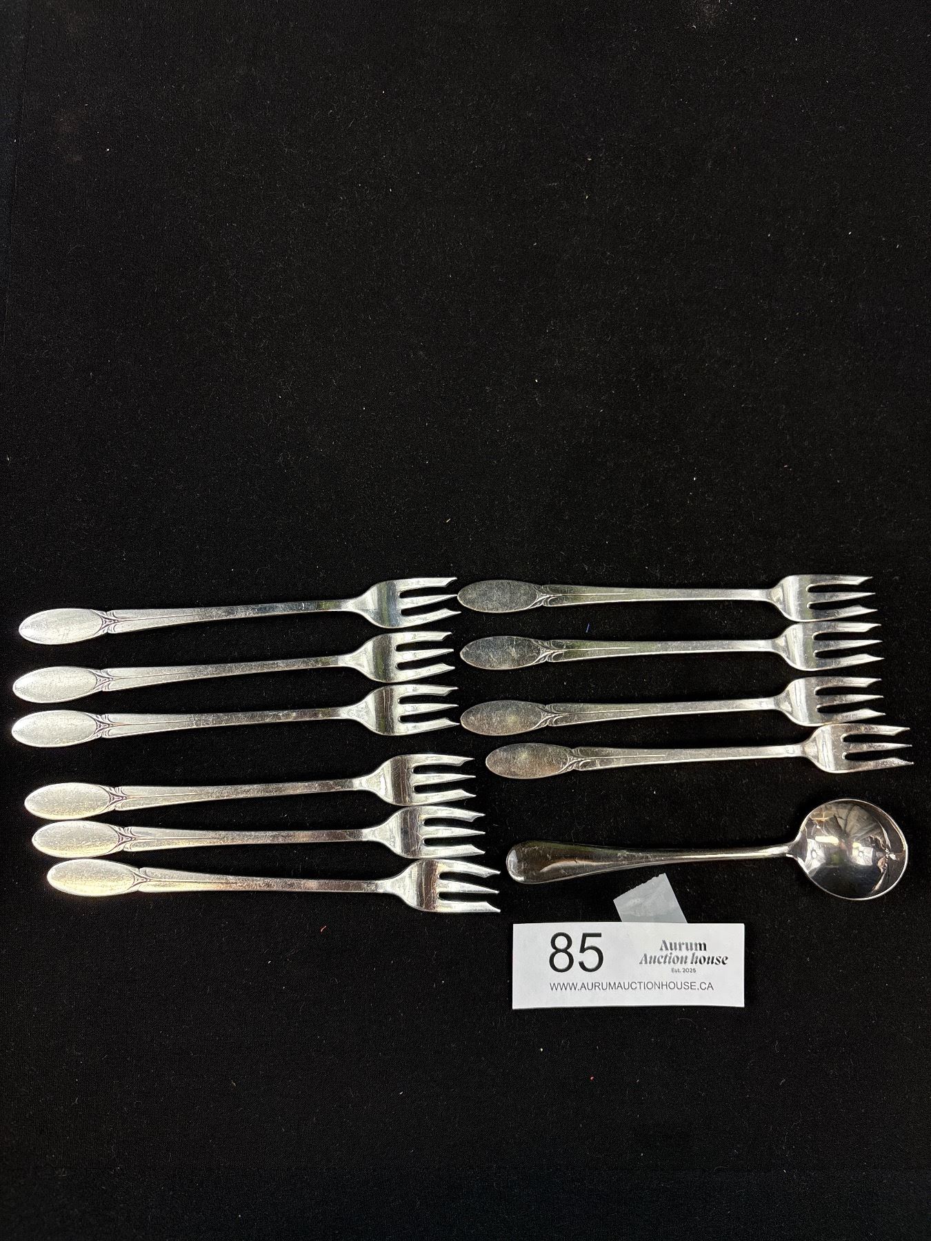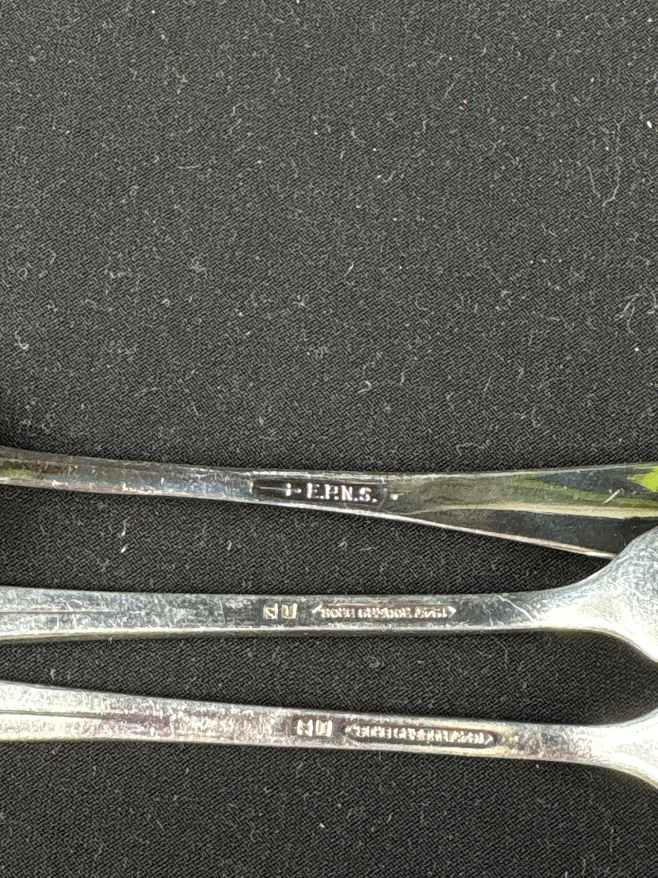 Early Silverplate Wm. Rogers 9" Ladle and Set of 10 1930s Cocktail Forks