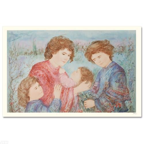 "Early Spring" is a limited edition serigraph on paper, numbered and hand signed by Edna Hibel (1917-2014). Includes Certificate of Authenticity! Measures approx. 47" x 31.5" (with border) 43.5" x 27.5" (image).
