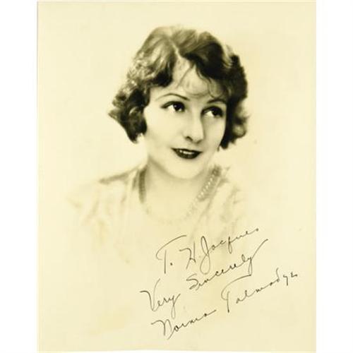 <B>Early Starlets Signed Photo Group.</B></I> Anna May Wong, Brigitte Helm, Dolores Costello, and Norma Talmadge grace this group of four photos with their radiant images and personalized inscriptions. Translated literally as "Second-Daughter Yellow Butterfly," Anna May Wong's Chinese signature, in addition to her screen name, was added by Wong to this 5.5" x 3.5" photo from the 1931 Broadway production <I>On the Spot.</B></I> This small gem is in Very Fine condition with slight tanning and a minor crease in upper left corner. Brigitte Helm signed this incandescent 8.5" x 11" b&w photo in Berlin, December 1930 (adding a lengthy inscription in German). In Very Fine condition with upper left tip of photo missing. Once known as the "Goddess of the Silent Screen," Dolores Costello signed (secretarial) this gorgeous 8" x 10" in 1928, the same year she married screen legend John Barrymore. A strikingly beautiful portrait of Costello, this b&w photo is in Excellent condition with mild tanning. An early b&w image of Norma Talmadge includes her signature (secretarial) and inscription to her fan H. Jacques. This sumptuous 8" x 10" is in Excellent condition with moderate tanning.<BR><BR><b>Shipping:</b> Flat Material, Small (<a target="_blank" href="http://www.heritageauctions.com/common/shipping.php">view shipping information</a>)