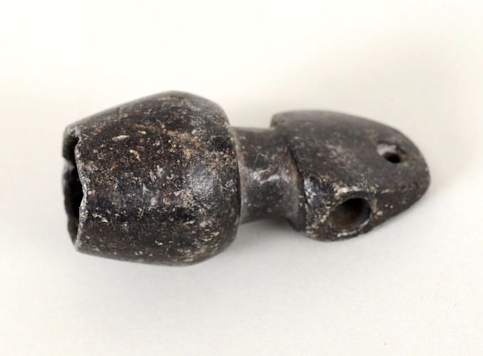 Early Steatite Micmac Pipe From Winnipeg, Manitoba 2 1/8" L. Good Condition