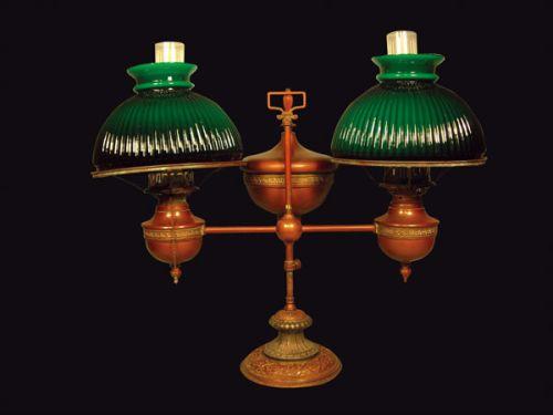 Early Student Lamp, bronze, copper and brass. Excellent original condition.
