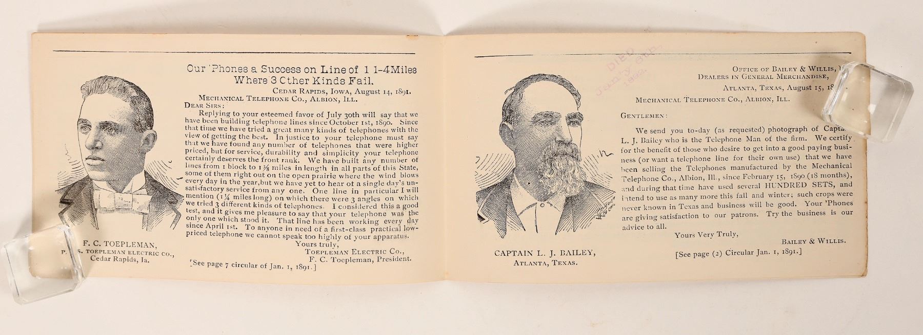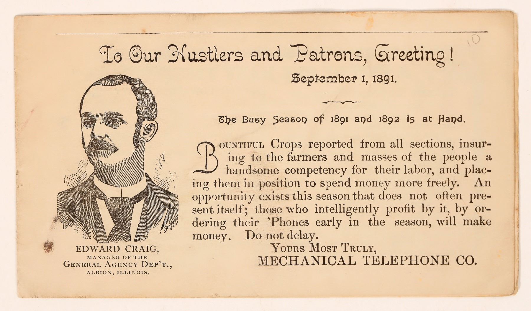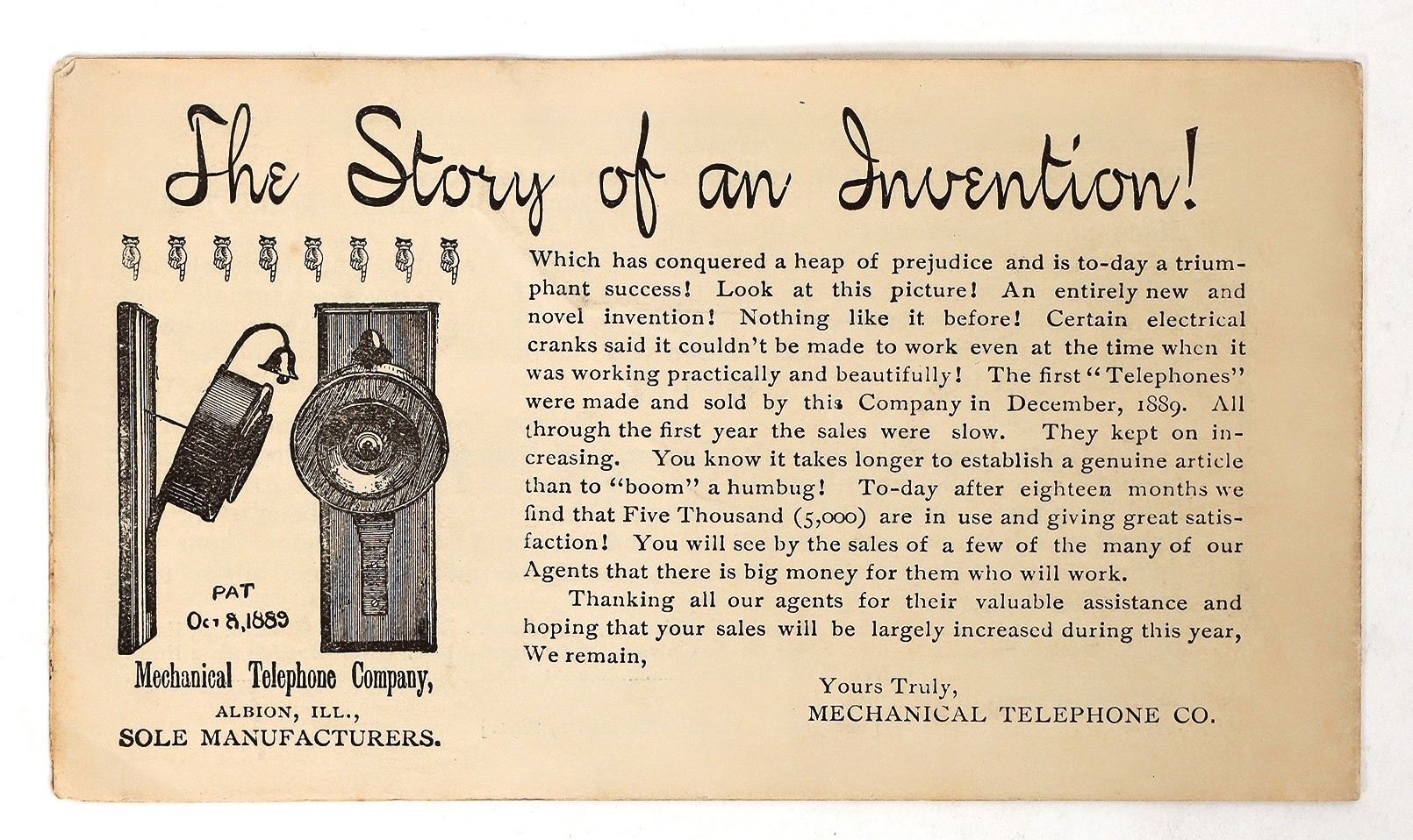 1891 8pp Mechanical Telephone Co. advertising booklet. Light creases. 3.5x6.25".