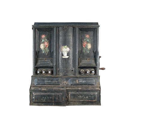 Early Tin "Chuck Wagon Kitchen" w/original inserts. Orininal paint and stenciling