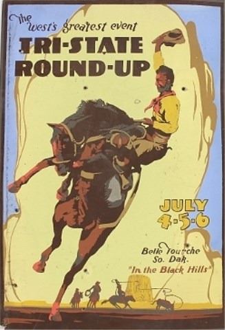 Belle Fourche SD, great colors remaining, some scattered staining and nail holes, fold out standee bracket intact, 13" X 19".