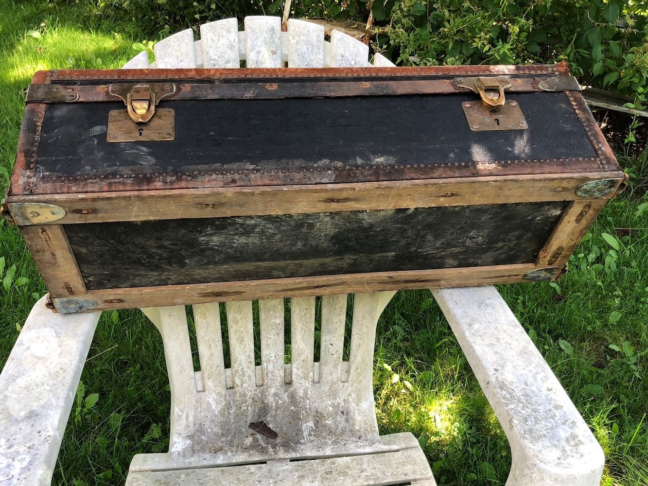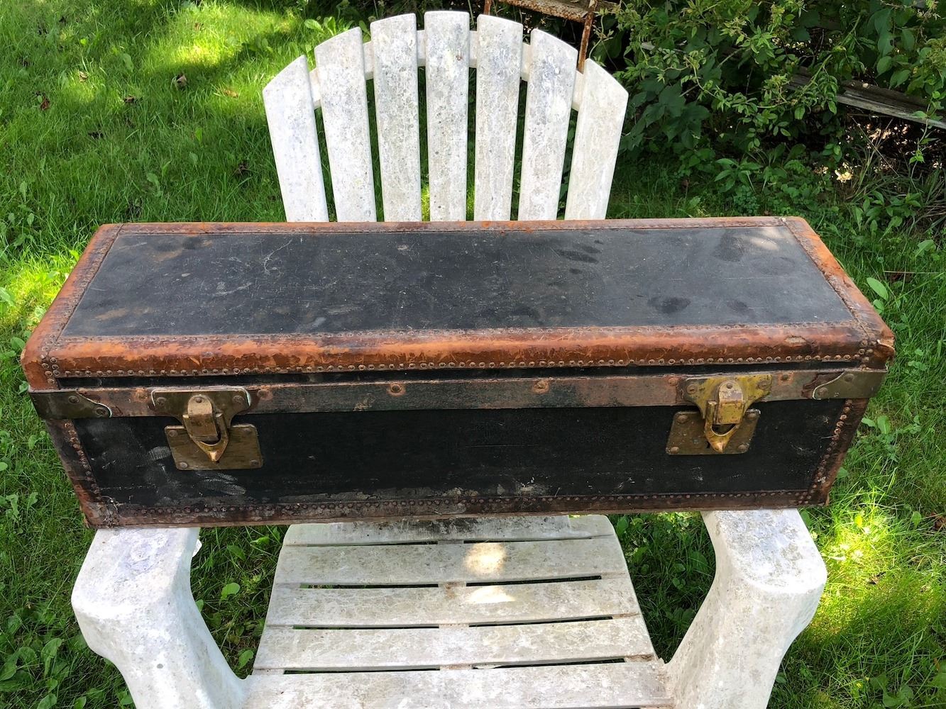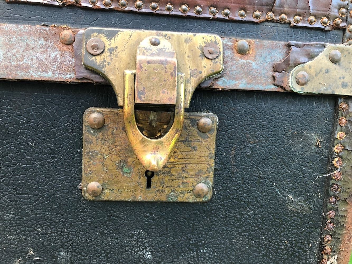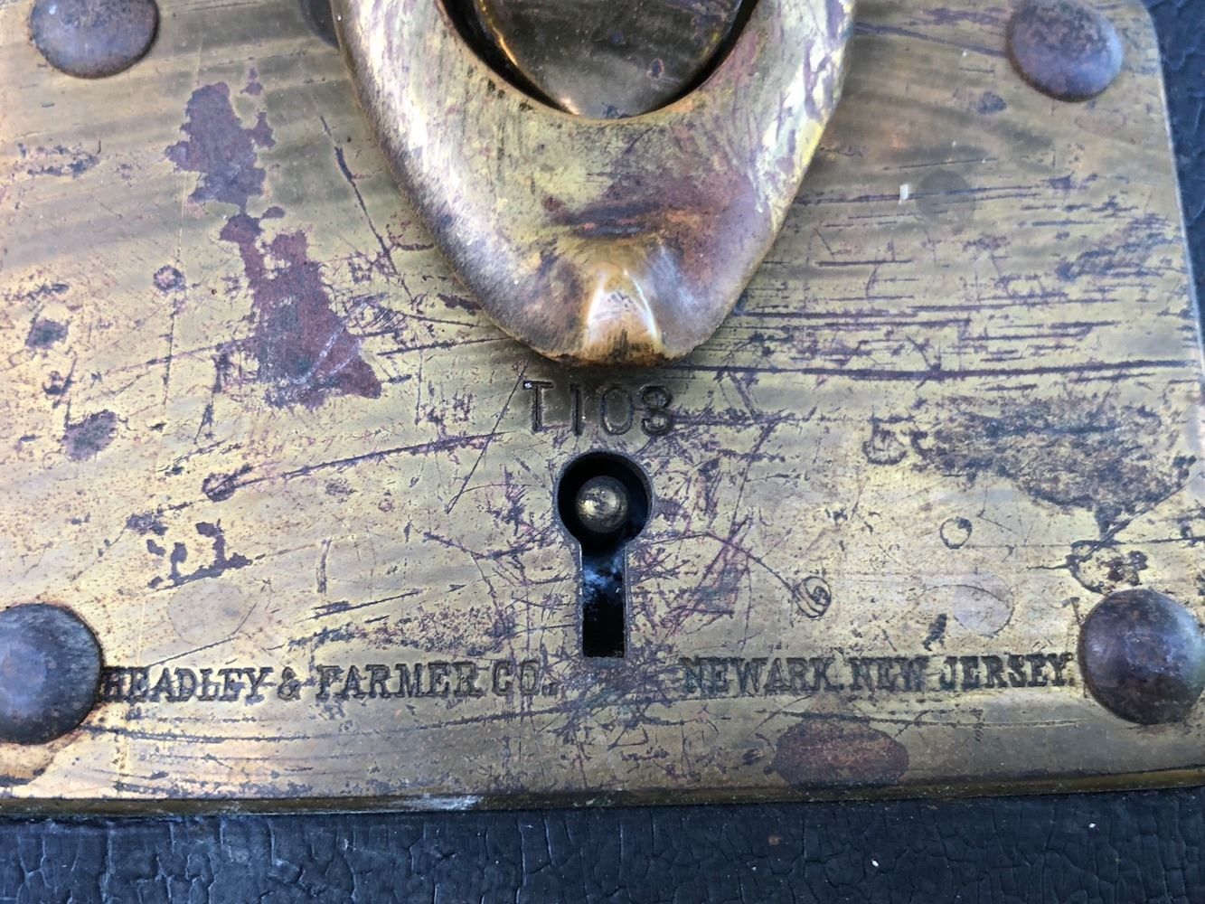 Early trunk made by Headly and Farmer Co., Newark, New Jersey. Unusual size.