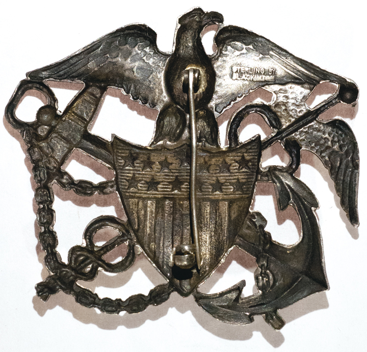 Early United States Navy. Sterling Silver. Medical Pinback Badge. Hallmarked by Blackington & Company, North Attleboro, Massachusetts. With Its Original Pinback. Choice Extremely Fine.